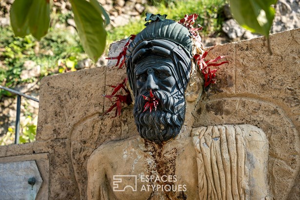 The elegantly landscaped grounds offer remarkable views of the surrounding hillsides and various vantage points. They extend around old vineyard terraces, original fountains, ponds fed by a natural spring, and vast shaded lawns.