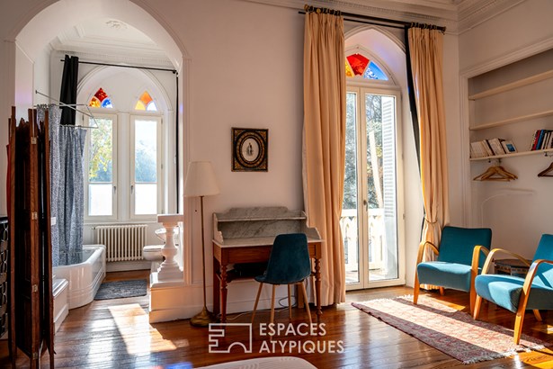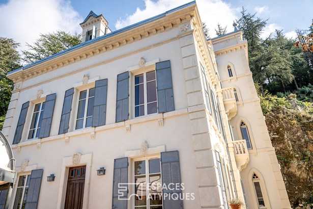 Subtly overlooking the hillsides of Tournon-sur-Rhone, this prestigious neo-Gothic residence, built at the end of the 19th century, displays all the majesty of its historic architecture within a green setting of approximately two hectares. Completely and carefully restored over the last two years, it combines authenticity, modern comfort and discreet refinement in perfect harmony.