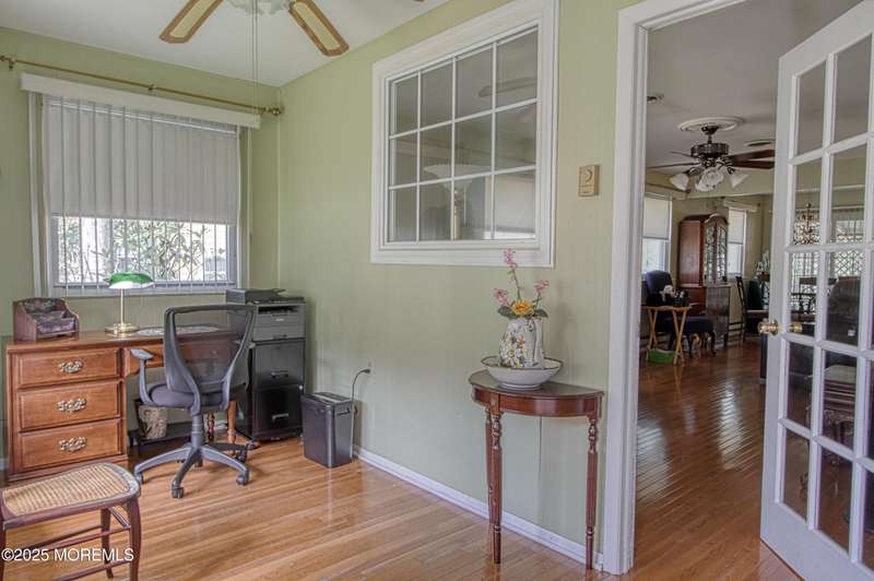 Welcome To 55+ Community In Crestwood Village Co-Op 4. Beautiful Cambridge Model home with 2 roomy bedrooms and 1.5 baths. This fine home has shiny hardwood flooring. A bath and a half, Jack and Jill bathroom. A front Florida room with direct entrance to the garage. Lovely screened Porch out back to a private back yard.