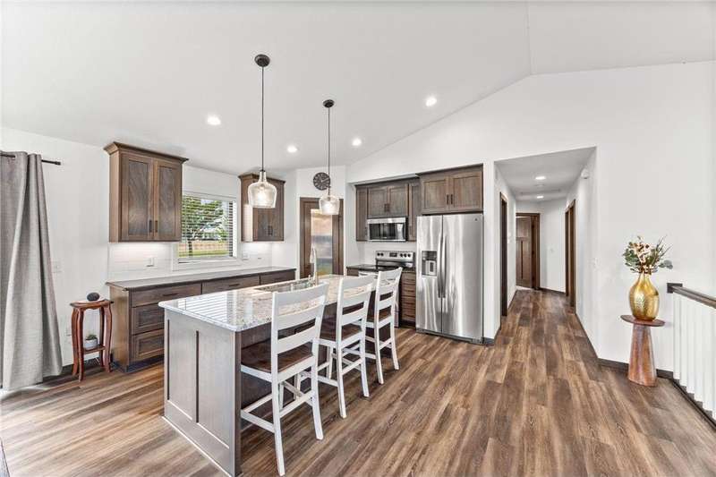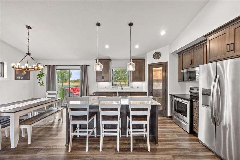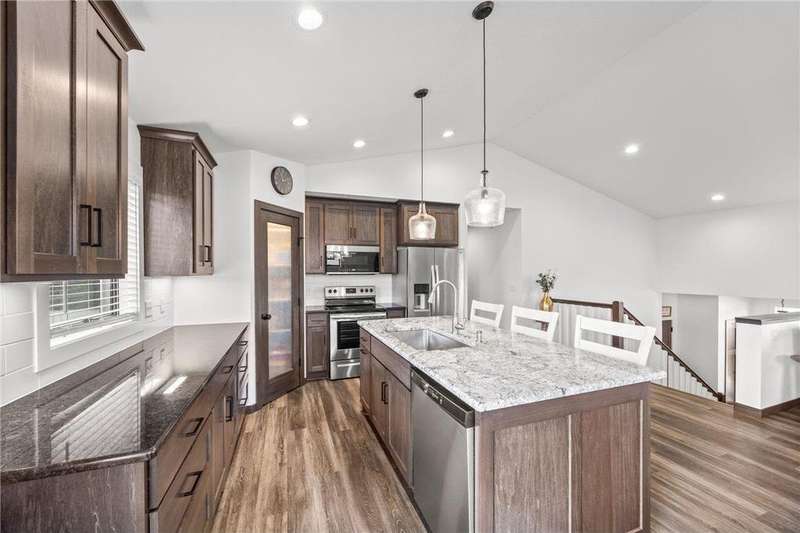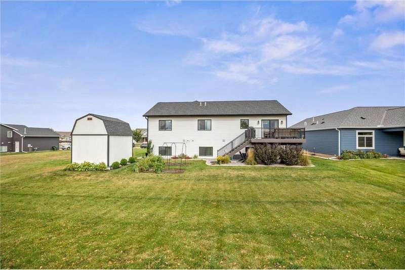 Stunning custom-built 5-bedroom, 3-bath home showcasing quality construction and attention to detail throughout. The kitchen features custom cabinetry, granite countertops, and tile backsplash. The primary suite includes private bath with dual sinks and tile shower. Spacious lower level offers a family room with cozy gas fireplace and home office with rain glass pocket door. Finished bonus room above the garage provides endless possibilities for additional living space, hobby room, or play area. Oversized attached heated 3-car garage offers access to both the bonus room and the lower level. Patio door off the dining room leads to the 14x14 maintenance free deck overlooking the beautifully landscaped yard. 10x12 storage shed for additional functionality. Convenient Southeast location close to amenities, parks, and walking paths.