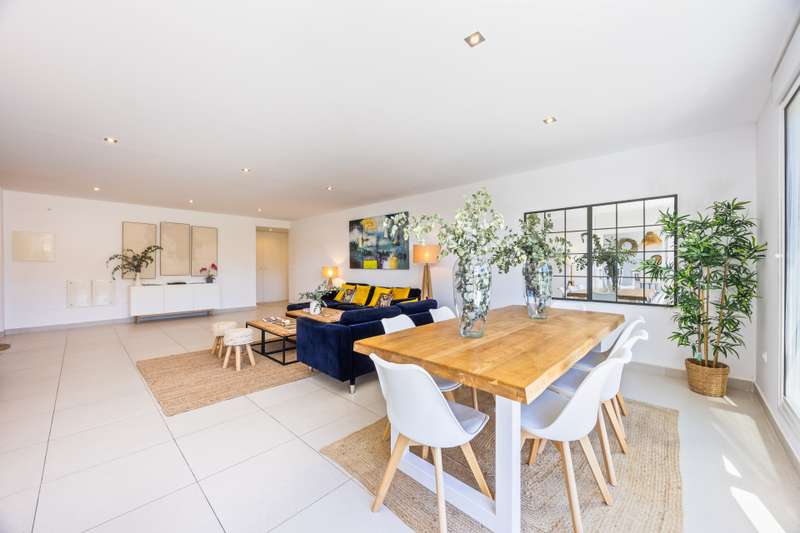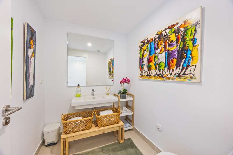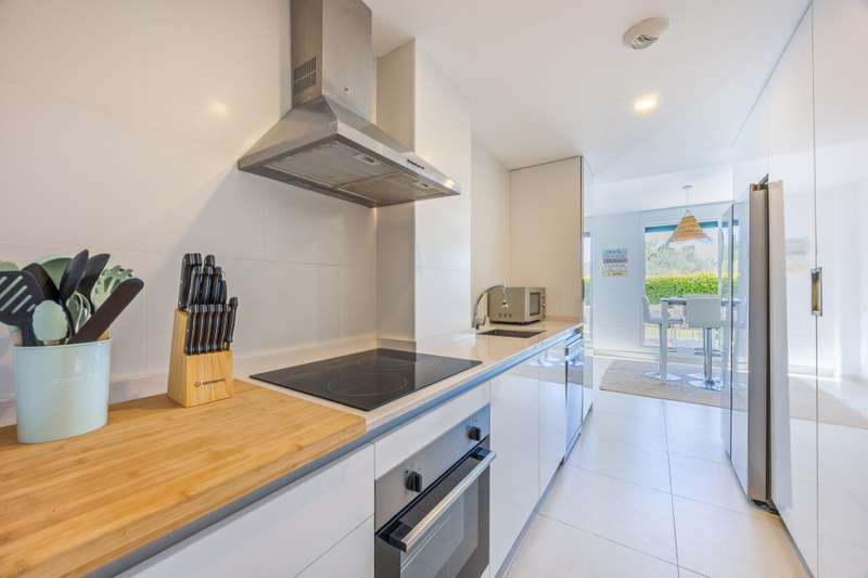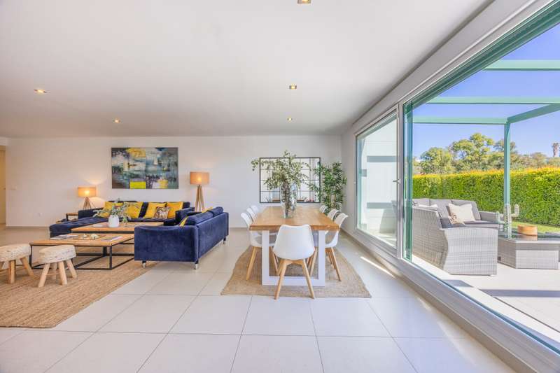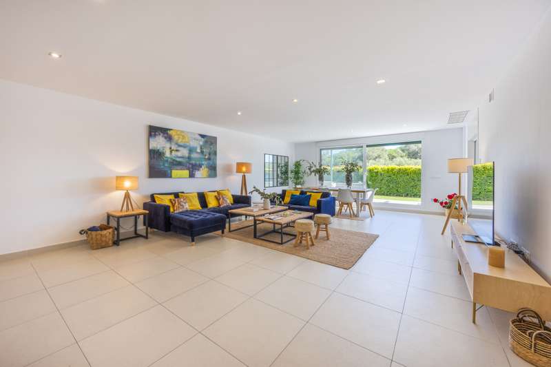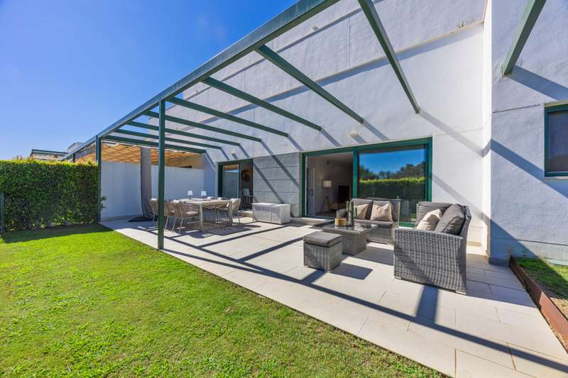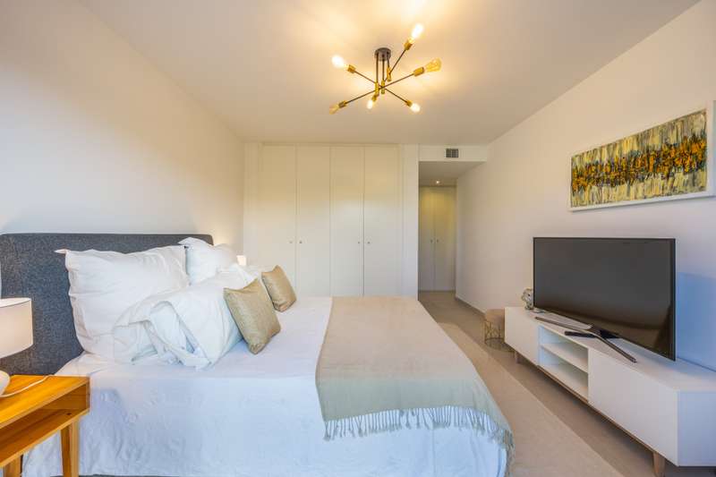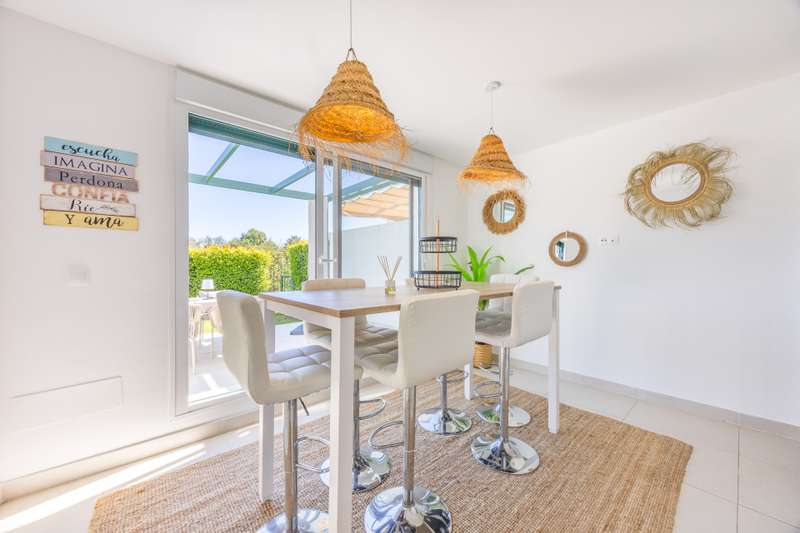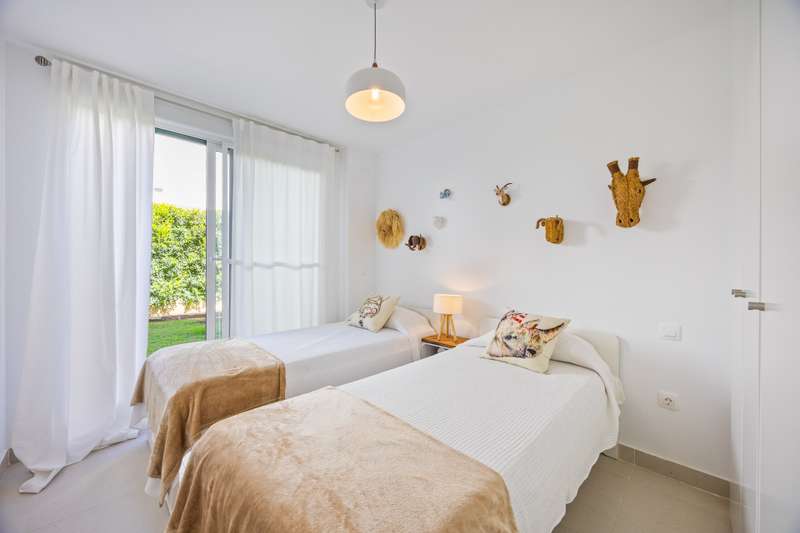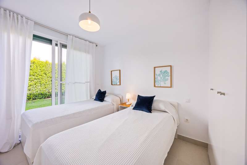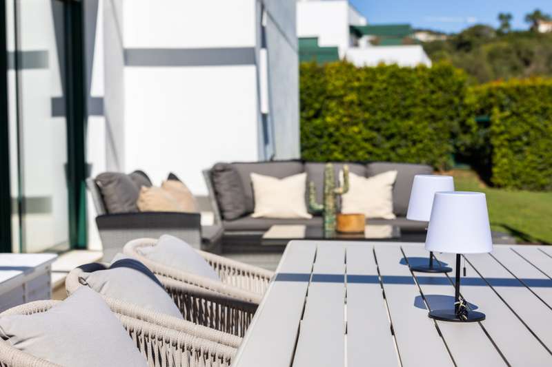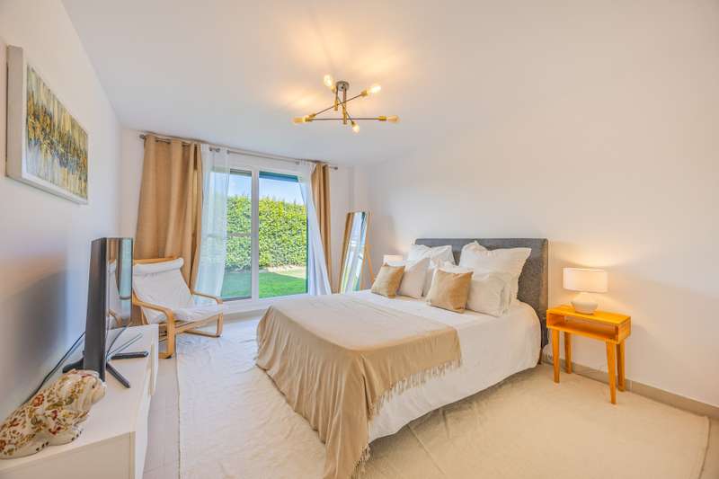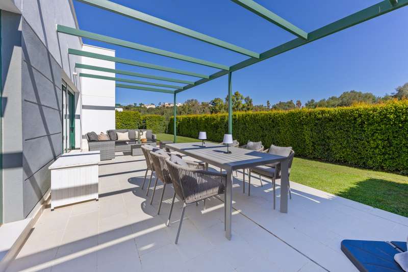 Modern ground floor apartment located in La Reserva de Sotogrande. This property stands out for its spaciousness and brightness, offering a generous built area of 405 m², with 198 m² of interior space and a spectacular 190 m² terrace, ideal for enjoying the Mediterranean climate and its private garden. The location is excellent, just a few meters from the golf course and the La Reserva clubhouse, with easy access to the highway, shops, Sotogrande marina, and the beaches. The property features four bedrooms and a service room, all with en-suite bathrooms, in addition to a further full bathroom and a guest toilet, providing maximum comfort. The living areas, such as the lounge and kitchen, open onto the private terrace, allowing for unobstructed views of both the countryside and the garden. The kitchen is fully equipped and the property also includes a laundry room, dressing room, fitted wardrobes, and a service room, enhancing overall functionality. Built in 2021, the residence incorporates modern systems such as aerothermal heating and air conditioning, ensuring energy efficiency and climate comfort throughout the home, as well as a home automation system. The communal areas include swimming pools, paddle tennis courts, and a fully equipped gym. For greater security and peace of mind, the development is gated, with 24-hour surveillance, security cameras, and concierge service. The proximity to schools, shops, the marina, and golf courses makes this property the ideal choice for families or as a high-level investment. The apartment also has a communal garage, basement, storage room, and is in excellent condition. Its location in an exclusive area such as La Reserva de Sotogrande and its proximity to all services, as well as the best beaches and clubs on the Costa del Sol, make this property a unique opportunity in Sotogrande for those seeking quality, outdoor space, and exclusivity.