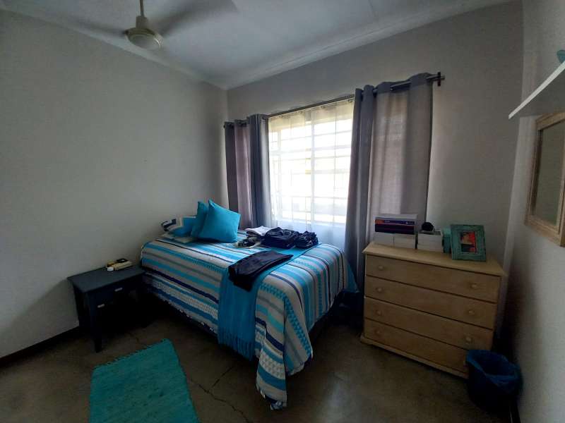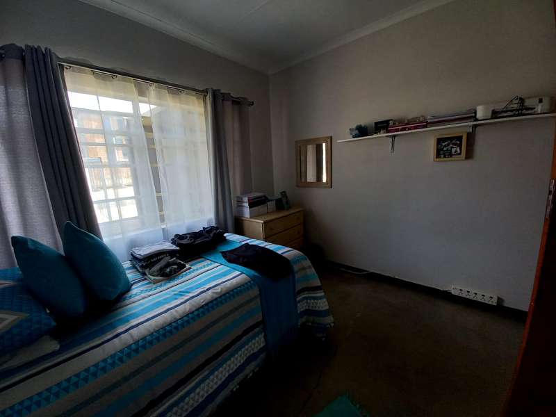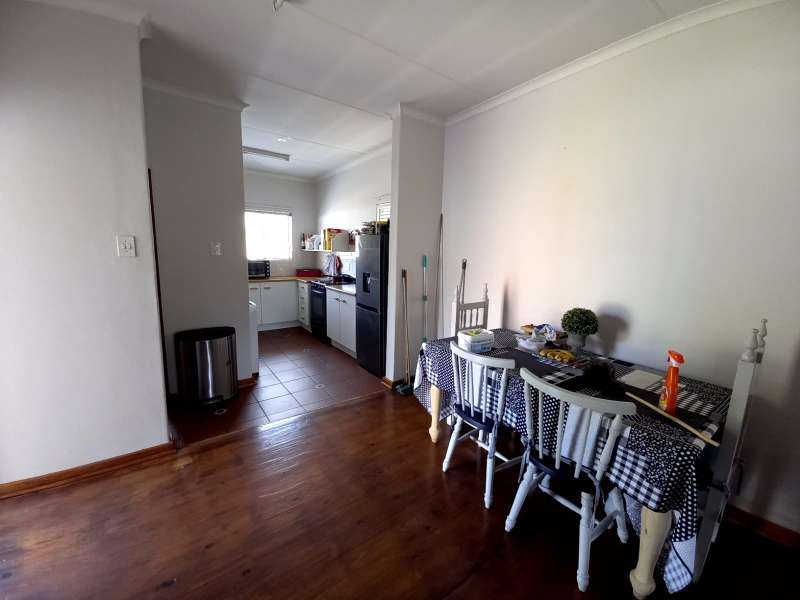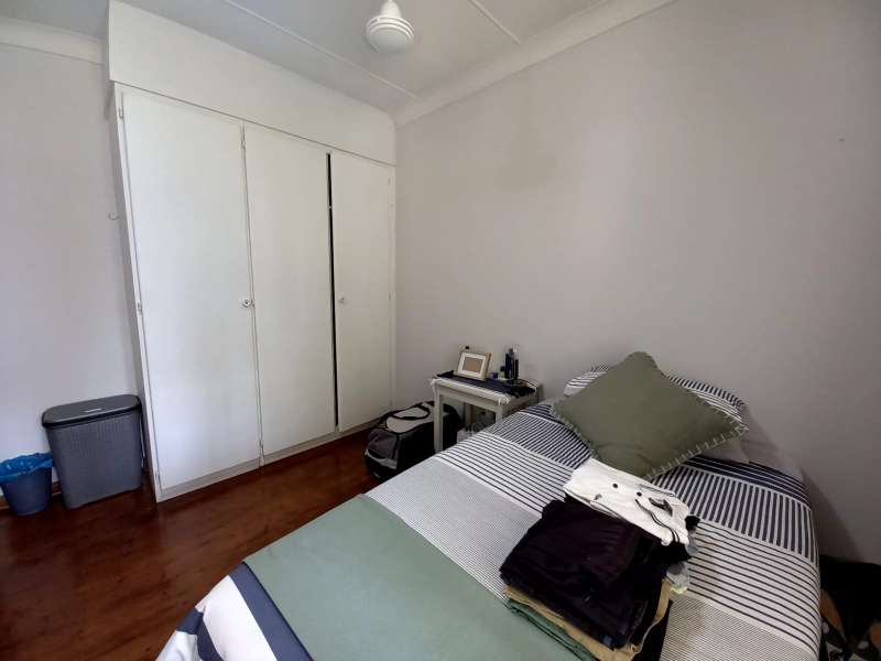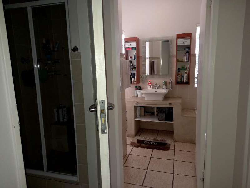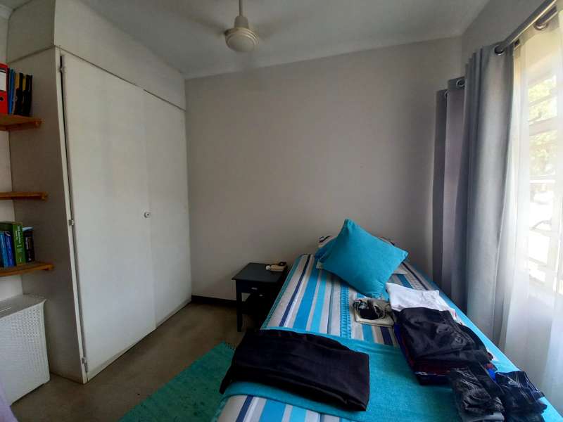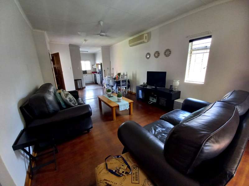 Introducing a stunning and spacious north-facing two-bedroom unit! This property features an inviting open-plan living area complemented by a tidy kitchen that flows seamlessly onto a covered patio overlooking a beautifully maintained garden, complete with an outdoor brick braai area. The kitchen boasts stylish tiled flooring, while the living area and hallway showcase elegant, well-preserved wooden, parquet floors. Both bedrooms are generously sized, featuring sleek, screed cement flooring, and all doors are solid and well-maintained. Convenience is key with a guest toilet conveniently located near the front entrance. Additionally, there is a separate shower room adjacent to the main bathroom, which includes a bath, basin, and toilet. Nestled in a quiet cul-de-sac, the complex offers a tranquil atmosphere, with security guards patrolling the area to ensure peace of mind for all residents.