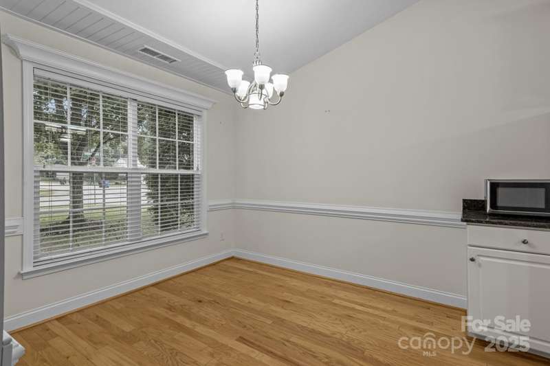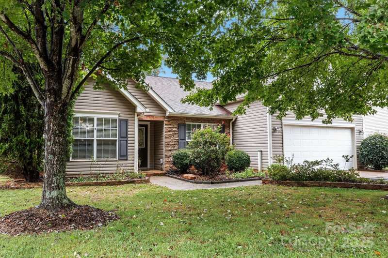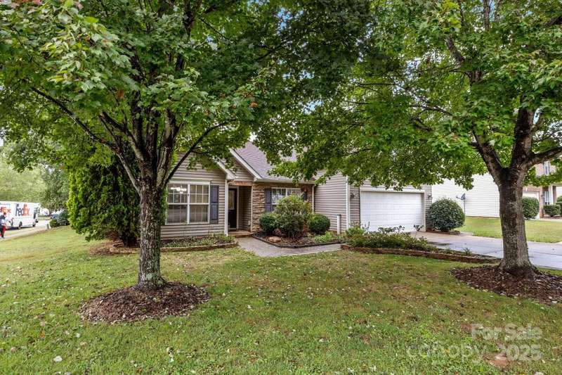 Charming Ranch-Style Home on Spacious Corner Lot in Mooresville. Check out this beautifully maintained 4-bedroom ranch home, ideally situated on a fenced corner lot in the sought-after Linwood Farms community. Enjoy the outdoors year-round from the covered back patio, surrounded by mature shade trees and a large, level yard that is perfect for entertaining or relaxing. Step inside to find a warm and inviting layout featuring vaulted ceilings in the great room and kitchen. The primary suite is complete with walk in closet and decorative ceiling beams. While the home offers four bedrooms all on the main level, one has been converted into a home office with custom built-ins, ideal for remote work or study. Upstairs, a bonus room provides the perfect space for a recreation room, playroom, or additional living area. Additional highlights include a spacious 2-car garage and access to fantastic neighborhood amenities, including a community pool, clubhouse, and playground. Don't miss your chance to own this move-in ready home in a wonderful community!
