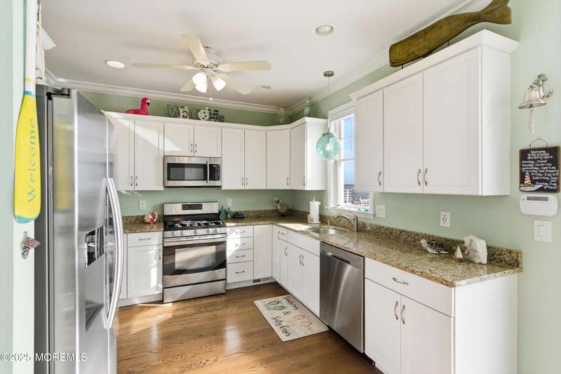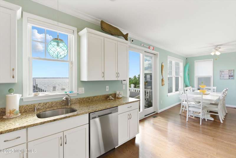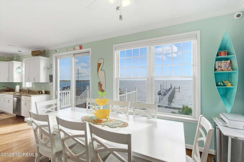 Experience coastal luxury in this beach-chic home built in 2016, located in the highly sought-after Green Island waterfront community. This spectacular Bayfront property offers breathtaking views that you'll fall in love with from both inside and out. The bright and inviting interior features sun-filled rooms, gleaming hardwood floors, and a cozy gas fireplace. The gourmet kitchen is fully equipped with granite countertops and quality finishes, while each of the three pristine bathrooms includes granite-topped vanities. Andersen 400 Series windows and motorized shades enhance both comfort and style. Step out onto the front balcony to enjoy tranquil bay breezes or relax on the rear deck just off the kitchen, perfect for watching sunrises and sunsets. The large pier is complete with two jetski lifts, a boat lift, water, and electric, offering everything you need for waterfront living at its best. Enjoy two nearby beaches and parks, plus an unbeatable location close to shopping, restaurants, and all the Shore has to offer. This vibrant Bayfront home is a must see come experience the lifestyle you deserve!