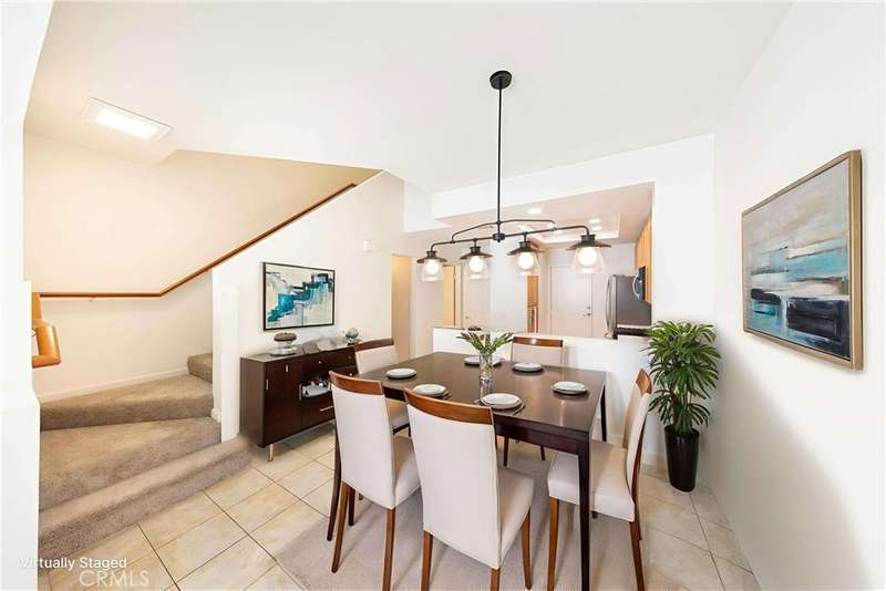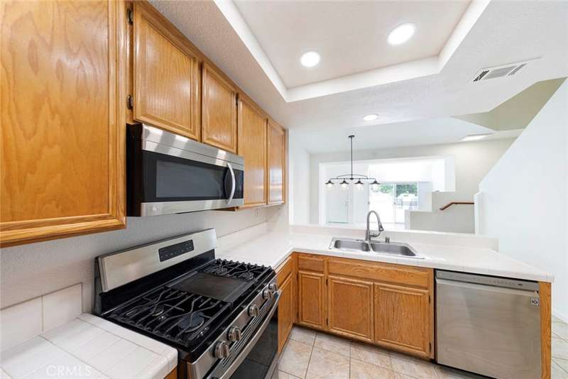 Inside, the condo features two upstairs bedrooms, including a spacious primary suite with a large, mirrored closet and an ensuite bathroom with a vaulted ceiling. A second full bathroom and an upstairs laundry room with shutter doors provide added functionality. The main living area showcases upgraded tile flooring, the kitchen incudes oak cabinets, tile countertops, recessed lighting and stainless steel appliances. Freshly painted throughout, and new carpet throughout the upstairs- this home is clean and move-in ready. Outdoor features include a private patio, a 1-car garage with direct entry, plus an additional single-car garage. Conveniently located near the freeway, and minutes from charming Old Town Temecula, this condo blends comfort, style, and accessibility -- perfect for those seeking easy living in a vibrant community.
