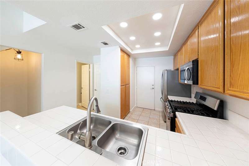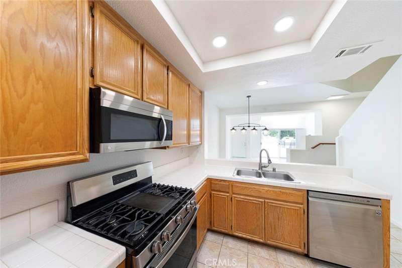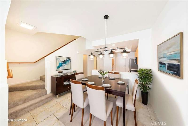 Inside, the condo features two upstairs bedrooms, including a spacious primary suite with a large, mirrored closet and an ensuite bathroom with a vaulted ceiling. A second full bathroom and an upstairs laundry room with shutter doors provide added functionality. The main living area showcases upgraded tile flooring, the kitchen incudes oak cabinets, tile countertops, recessed lighting and stainless steel appliances. Freshly painted throughout, and new carpet throughout the upstairs- this home is clean and move-in ready. Outdoor features include a private patio, a 1-car garage with direct entry, plus an additional single-car garage (2 TOTAL). Conveniently located near the freeway, and minutes from charming Old Town Temecula, this condo blends comfort, style, and accessibility -- perfect for those seeking easy living in a vibrant community.