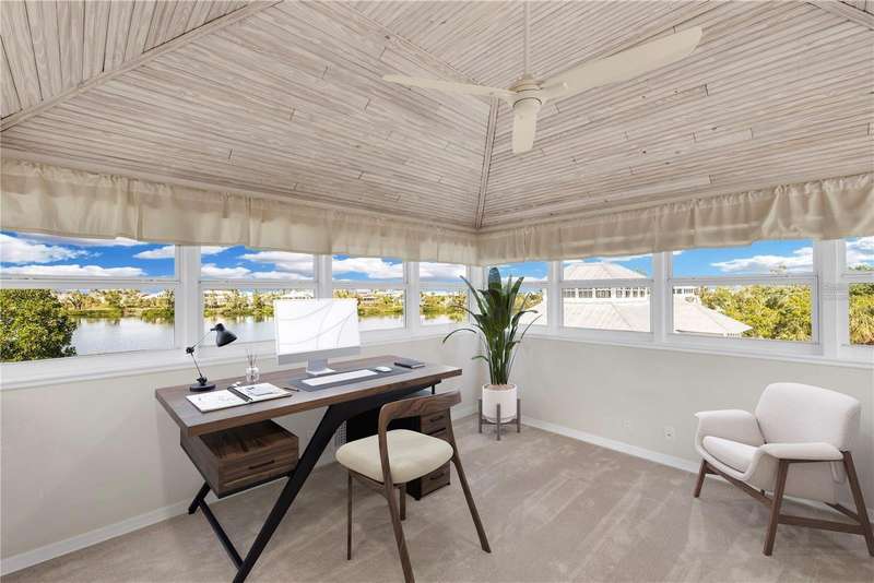 One or more photo(s) has been virtually staged. This waterfront Seawatch residence in Boca Grande offers over 3,000 sq. ft. of living space showcasing stunning views of Lake Gasparilla and its abundant birdlife. This spacious home features three bedrooms, three bathrooms, and multiple bonus areas that could become your office or library. Expansive glass sliding doors lead to a large open porch with unhindered lake views. The eat in kitchen was recently outfitted with new stainless appliances and has plenty of counter space and a roomy pantry. The top floor leads to an en-suite main bedroom with updated bath, a private, open deck, and an upper-level “Seawatch” room. This property has impact, storm rated doors and windows, hardwood floors, updated fixtures and much more. As part of the popular, gated Seawatch community, residents enjoy two pools, three tennis courts, and private beach access to the islands best beach.