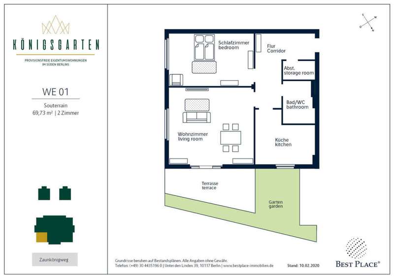 The ensemble in Zaunkönigweg rises on a spacious garden plot and consists of the street-side apartment building and the two detached houses on the quiet garden side. The Königsgarten project is an ideal capital investment and has 23 rented residential units with living areas between approx. 36 m² and approx. 156 m². Each unit has a balcony or terrace. A highlight are the private gardens to the flats on the ground floor and the spacious terraces to the maisonettes on the top floor. The two detached houses with gardens and direct access to the underground garage are particularly attractive. Optionally, a parking space can be purchased in the underground garage.