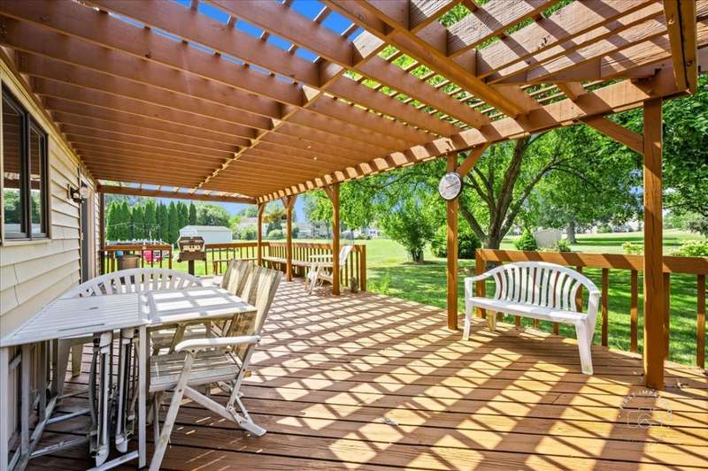 Classic East Side St. Charles home situated on a mature, landscaped lot backing to open space. Prime location just minutes from highly rated St. Charles East High School and Wredling Middle School. Updates include: Furnace & A/C (2020), Roof (2021), Driveway (2020), Front walkway (2021), new carpet upstairs (2024), many newer windows, re-faced kitchen cabinetry, newer vanities and countertops in powder room and primary suite, and fresh paint in several rooms (2025). Open living and dining room perfect for entertaining. Updated kitchen opens to family room with raised-hearth brick fireplace and doors to pergola-covered deck. Gorgeous updated powder room. Primary suite offers new carpet, walk-in closet, ceiling fan, and vaulted bath with newer white vanity, countertop, faucets, mirror, whirlpool, and shower. Three additional bedrooms share hall bath with double sinks and tub/shower. Finished lower level features a bright and spacious recreation room plus office/playroom. Private backyard and easy access to schools, shopping, and more.
