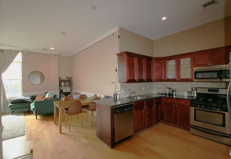Beautiful Soleil Lofts penthouse home with two garage parking spots, just minutes from vibrant Jersey City's many cultural activities, superb dining, nightlife, shopping and lovely parks. This expansive sun-drenched two-bed, two-bath with over-sized windows features a large modern kitchen with granite counter tops, limestone back splash, stainless steel appliances and rich cabinetry that's open to spacious living/dining area. Perfect for entertaining family and friends or just relaxing in your urban retreat. Sizeable bedrooms including primary that easily accommodates a king-size bed and offers the convenience of an en-suite, and tasteful contemporary baths with granite vanity and limestone flooring. High ceilings, recessed lighting, crown molding, hardwood flooring, abundant storage, central air and in-unit washer/dryer complete this splendid home. Bus to Manhattan at the corner or short distance to PATH.