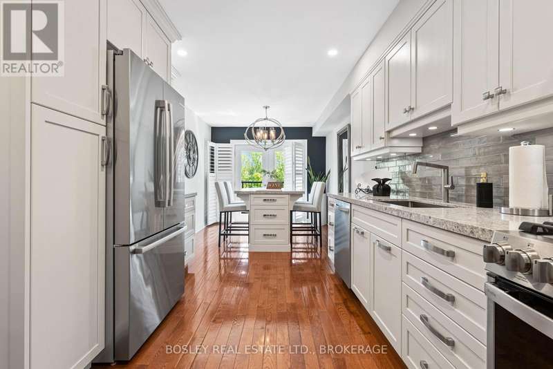 This impeccably maintained bungaloft townhome backs directly onto the scenic Hillside Estates Trail and a peaceful treed ravine. Built in 2005 and fully finished on all three levels, this home offers over 2,000 sq. ft. of thoughtfully designed living space, ideal for downsizers, professionals, or anyone looking for low-maintenance living in a gorgeous natural setting. Step inside and take in the vaulted ceilings, dormer window, and open, airy feel. Hardwood flooring runs through the main level, complemented by neutral tones, California shutters, and upgraded lighting. The heart of the home is the beautifully renovated kitchen, complete with quartz countertops, shaker-style cabinetry, tiled backsplash, under-cabinet lighting, and quality stainless steel appliances. From the kitchen, step out onto your raised composite deck, complete with a roll-out awning, enjoy morning coffee or evening wine with serene ravine views. Below, the private stone patio offers another peaceful outdoor space. The main floor also offers flexible living options, with a spacious family room that easily doubles as a primary bedroom. It features a closet and ensuite privilege to the main 3-piece bathroom, making one-level living a real possibility. Upstairs, you'll find a generous loft space leading into a nearly 20-foot-long bedroom retreat. The ensuite bath is spa-inspired, with heated tile floors, a walk-in tiled shower, and a double quartz vanity. Downstairs, the finished lower level includes a cozy rec room, another bedroom with a full-sized window, a bonus room or office space, and a stylish 3-piece bathroom. Other notables: main floor laundry with full laundry tub, direct garage access to the backyard via stone pathway, carpeting only on the stairs to the second floor. Be sure to check out the video tour. (id:7434)