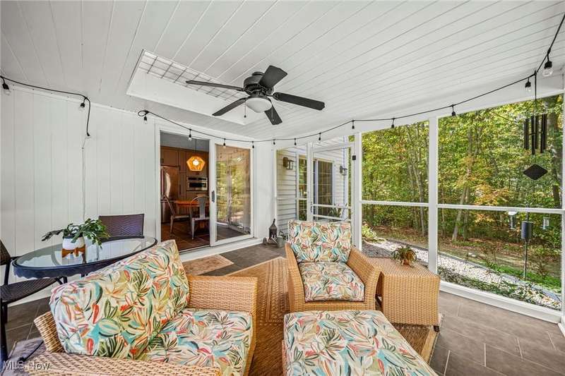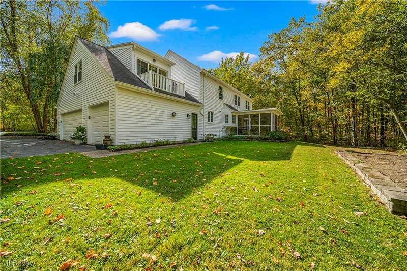 This charming Cape Cod home exudes warmth and serene beauty from the moment you walk through the front door. The owners have thoughtfully completed numerous updates, including a stunningly renovated kitchen and a redesigned laundry/mudroom. Set on 2.37 acres, this private retreat offers wooded views from every window and from the expansive screened-in porch?perfect for enjoying the surrounding gardens and natural beauty. The Great Room is a true showstopper, featuring a soaring cathedral ceiling with authentic wooden beams, rich wood plank detailing, a grand fireplace, and massive windows that flood the space with natural light. The updated kitchen is equally impressive, boasting custom cabinetry, high-end appliances, a spacious center island, and a large garden window overlooking the yard. Off the sunny breakfast room, the screened-in porch invites you to relax and take in the tranquil views. A generous dining room and an office/library provide additional main-level living space, complemented by two half baths for convenience. Upstairs, you'll find four spacious bedrooms and two full baths, including a private owner's suite.Additional highlights include a three-car garage, fresh exterior paint, nearby walking trails, and unbeatable proximity to the Holden Arboretum. This is more than a house?it's a lifestyle. Come fall in love with your own private retreat!