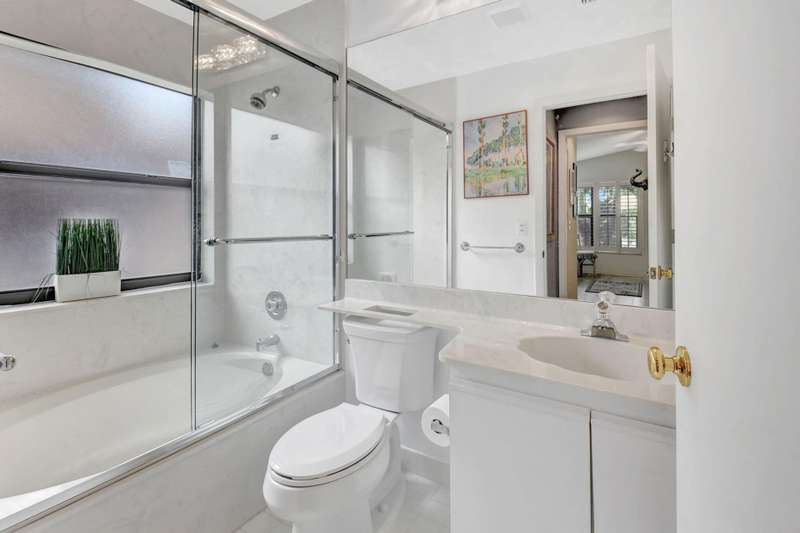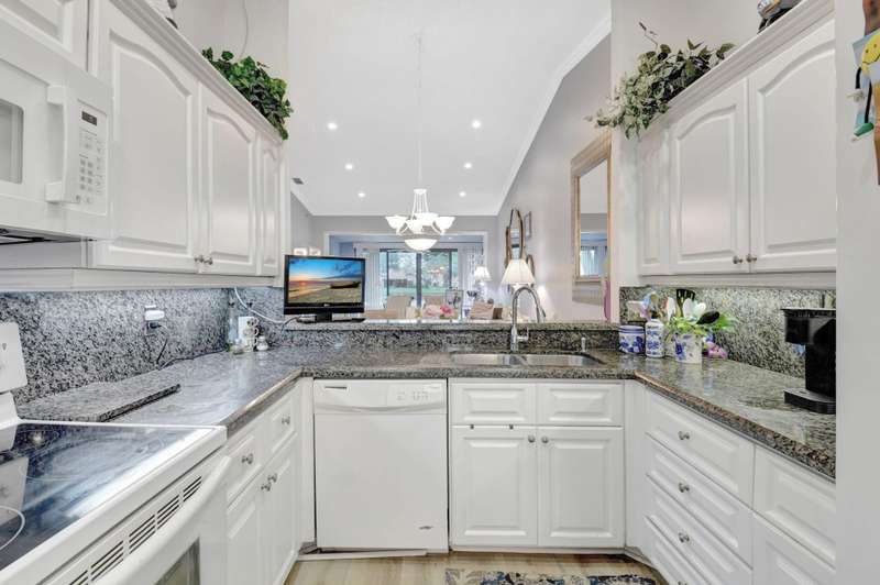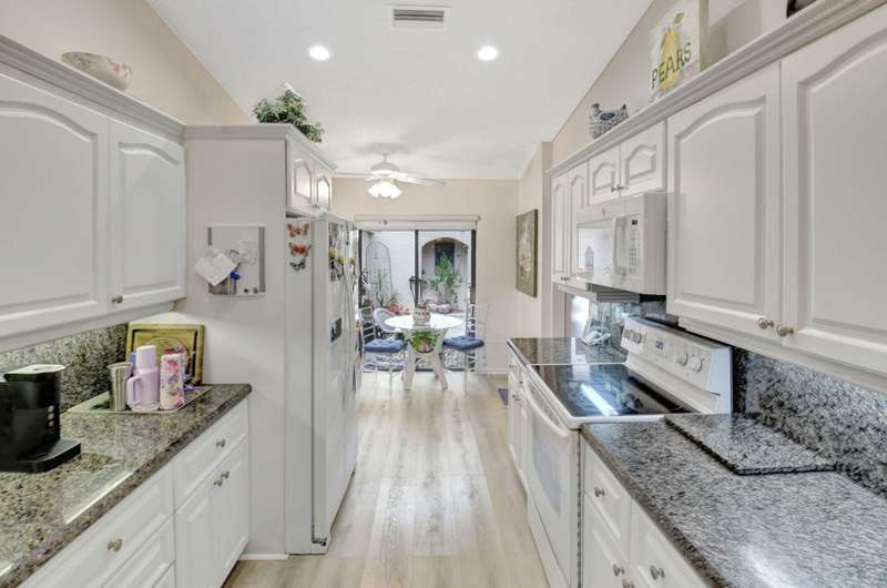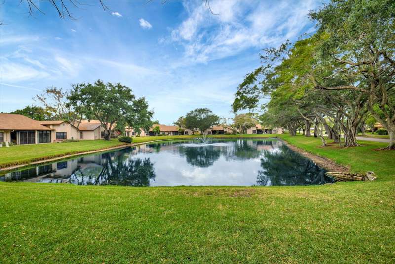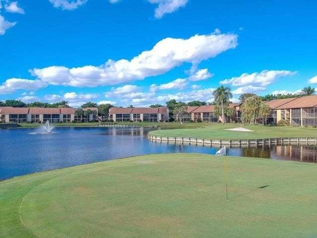 Great long lake view - 3 Bedroom, 2.5 Bathroom updated Villa with a private courtyard and 1.5 car garage. Enjoy the lake view from almost everywhere in this home. Updated eat in kitchen with plenty of cabinet space. Updated bathrooms plus new windows with accordion shutters plus beautiful Plantation Shutter throughout. The roof was replaced in 2024. Easy walking distance to clubhouse, community pools , and other amenities. Boca Delray is a non-mandatory membership community with a 24 hour manned gate, newly remodeled clubhouse, fitness center, 2 community pools, Har Tru tennis courts, Pickleball, bocce, and an 18 hole executive golf course. Affordable golf memberships are available.