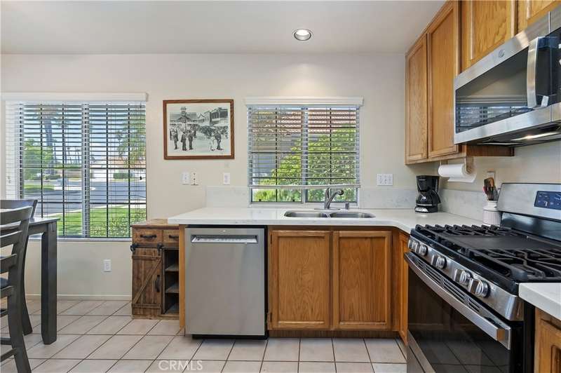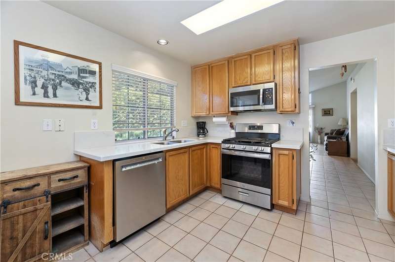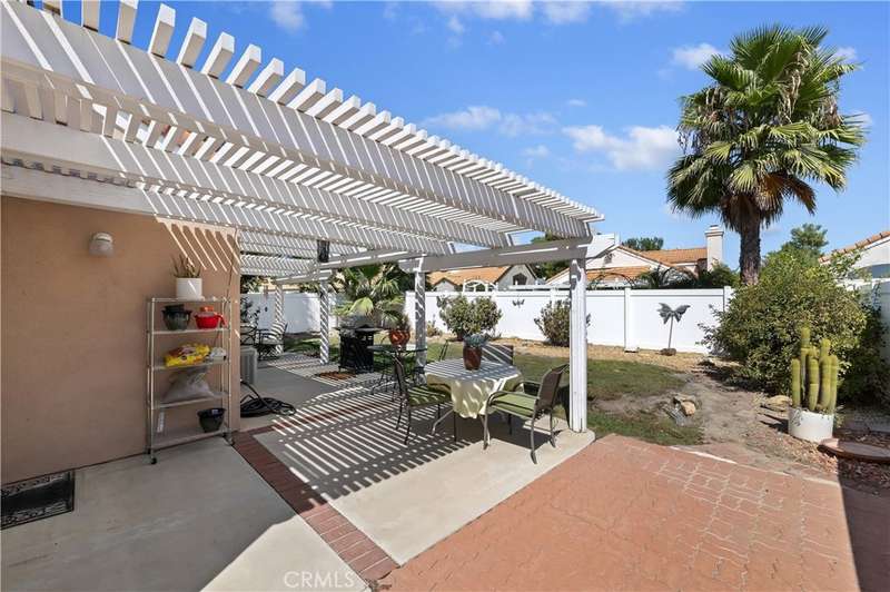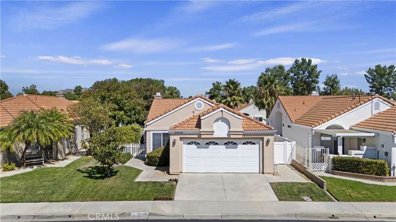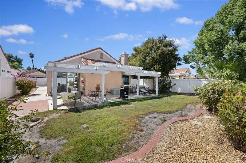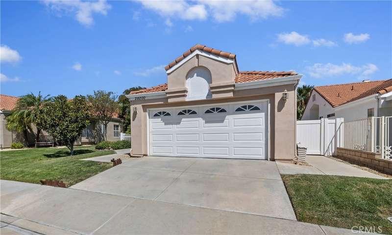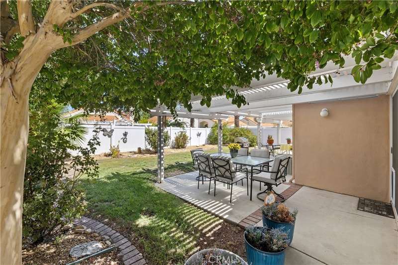 Discover the perfect blend of comfort and convenience in this lovely single-story home located in the Palmilla on the Greens 55+ Senior Community. This home features 3 bedrooms, 2 baths with 1206 square feet of living space. The 3rd bedroom is versatile and being used as an exercise room with no closet. This residence offers soaring vaulted ceilings, an open floor plan, and a cozy fireplace for those relaxing evenings. The kitchen shines with natural light, quartz countertops and newer GE stainless steel appliances. Cozy breakfast nook eating area. Step outside to a private backyard retreat with newer vinyl fencing, a full-length covered patio, and fruit trees - an ideal setting for outdoor living and entertaining. Living in Palmilla on the Greens means access to a pool, spa, and clubhouse, plus all the Menifee Lakes amenities - including lakeside trails, a gym, golf, picnic areas, fishing and more. With its central location you are near lots of shopping and dining, Loma Linda Medical Center, Kaiser Medical Center, Temecula's award-winning wineries, and casinos - plus quick freeway access - every convenience is within reach. Menifee is the fastest growing city in California. Low taxes, low HOA. Come live the good life!