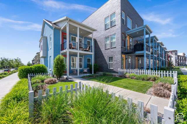 Seller offering 1/0 rate buy down with Jackson Ogden at First Colony Lender. Enjoy 1% off your interest rate for the first year! Contact agent for details. Come experience this like-new townhome nestled in the heart of South Station, one of Daybreak's most desirable communities. This end-unit townhome is walking distance to restaurants, recreation, and the new Bees baseball stadium. Key features include three well-sized bedrooms, including a master suite with vaulted ceilings, walk-in closet, expansive windows with stunning views of the Wasatch Mountains, and the cutest walk-out balcony. Enjoy an open-concept kitchen and dining area with ample storage space throughout the townhome and spacious two-car garage. To top it off, this stunning townhome offers a covered balcony, as well as covered patio, and is fully fenced with a yard that's maintained by the HOA.