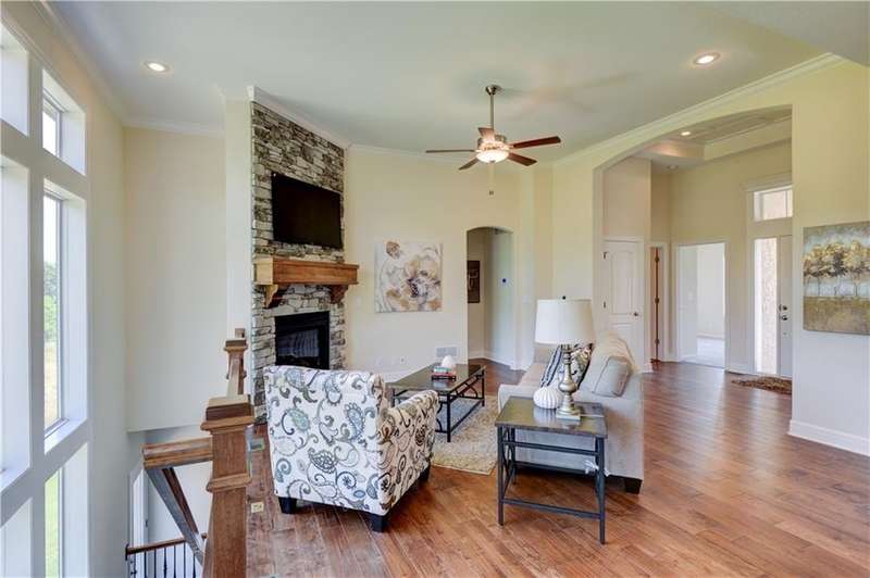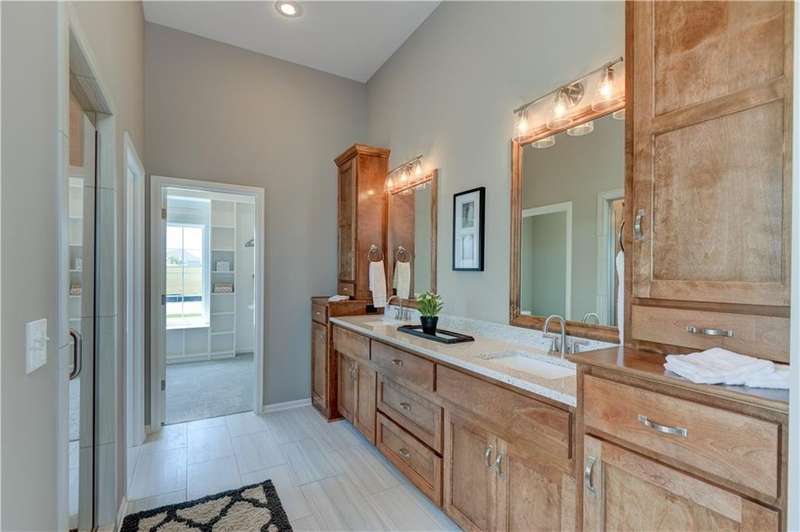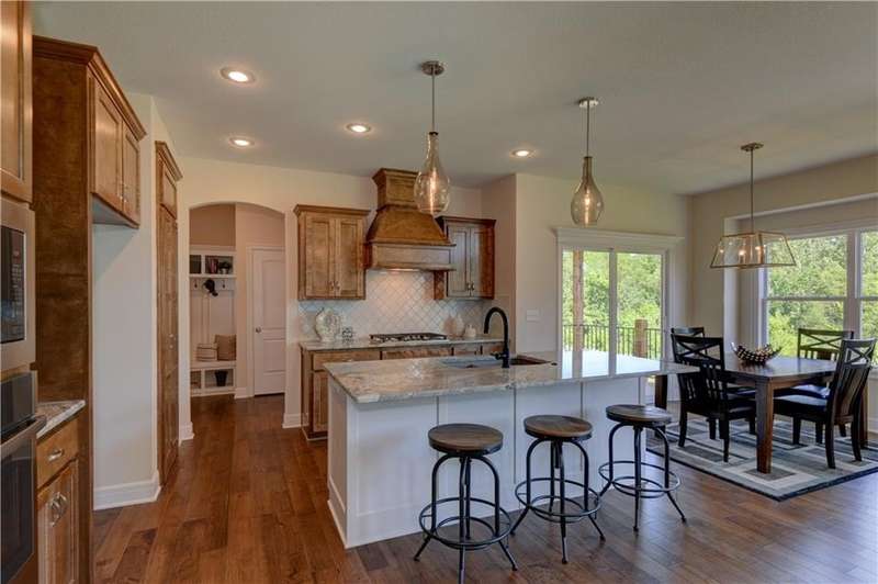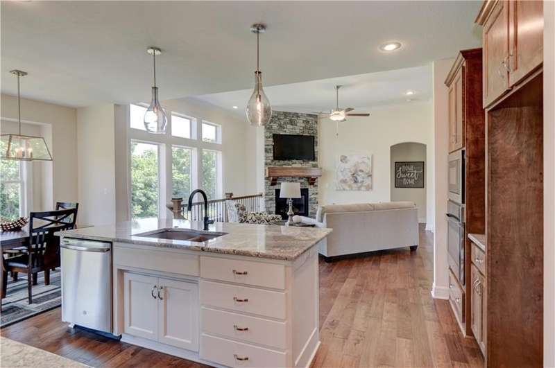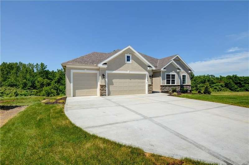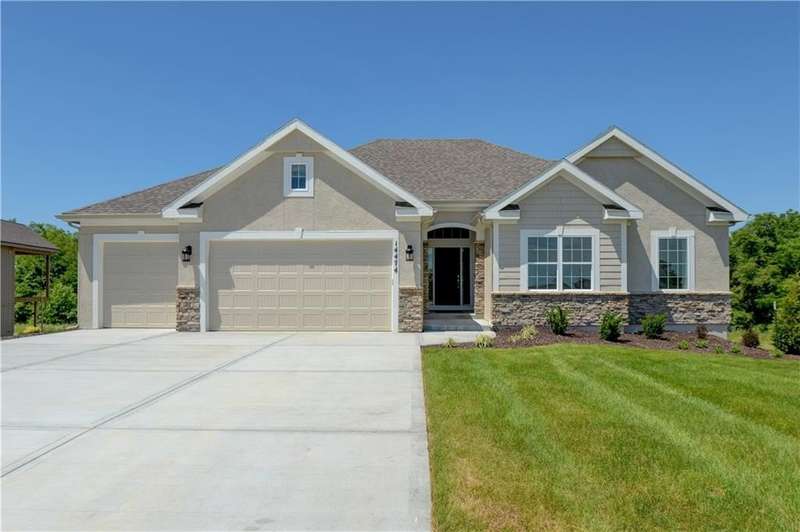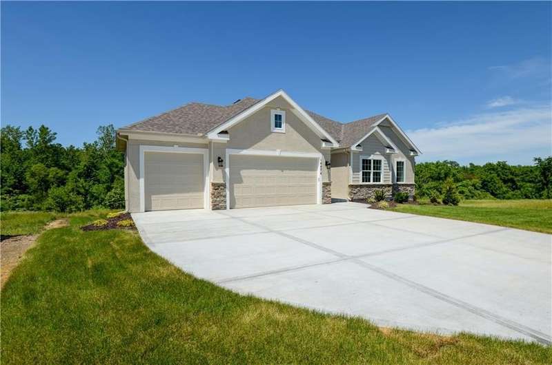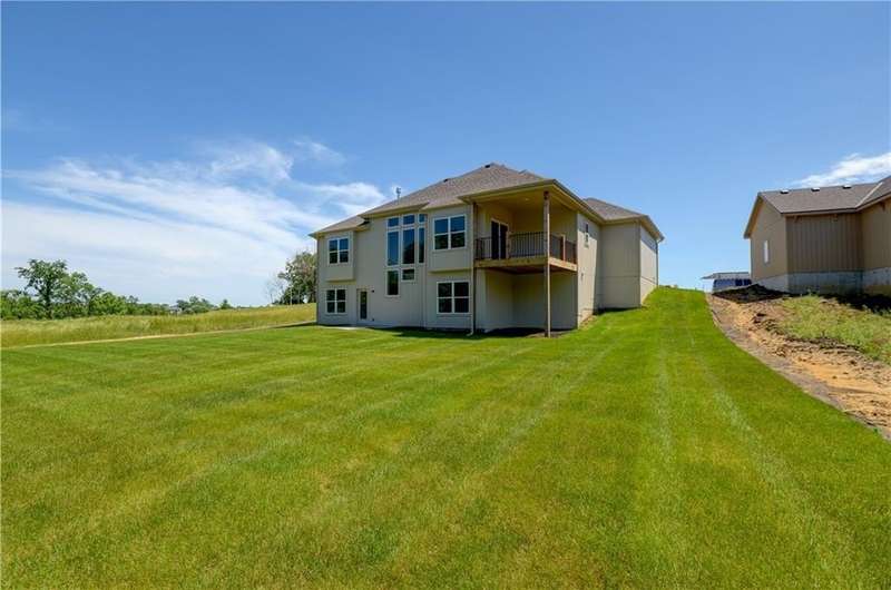 Lot 46 The Hampton IV by New Mark Homes. Reverse plan open Living Room with wood floors and stone fireplace. Kitchen and Breakfast Area has Island, walk in pantry, wood floors, gas cooktop. Main floor Master Bedroom and Bath suite with free standing tub and separate shower. Spacious walk in closet. Main floor 2nd Bedroom, Bath, and Laundry. Lower Level finished Rec Room, 3rd & 4th Bedrooms and full bath. Great storage area. 3 Car Garage. Just 10 minutes to the Legends shopping and entertainment and 30 minutes to the airport, Falcon Lakes is conveniently located on K-7 for easy highway access. Acclaimed Basehor-Linwood Schools. Monthly HOA dues provide lawn maintenance including weed and feed and sprinkler turn on and off as well as snow removal over 2 inches.