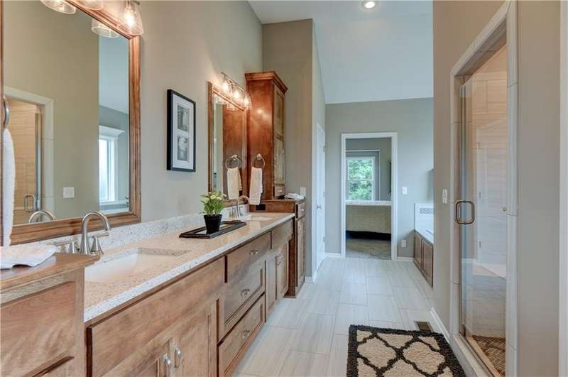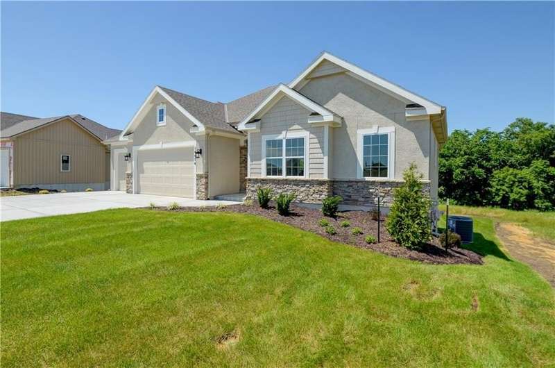 Lot 46 The Hampton IV by New Mark Homes. Estimated to be complete in Feb/March 2026. Reverse plan open Living Room with wood floors and stone fireplace. Kitchen and Breakfast Area has Island, walk in pantry, wood floors, gas cooktop. Main floor Master Bedroom and Bath suite with free standing tub and separate shower. Spacious walk in closet. Main floor 2nd Bedroom, Bath, and Laundry. Lower Level finished Rec Room, 3rd & 4th Bedrooms and full bath. Great storage area. 3 Car Garage. Just 10 minutes to the Legends shopping and entertainment and 30 minutes to the airport, Falcon Lakes is conveniently located on K-7 for easy highway access. Acclaimed Basehor-Linwood Schools. Monthly HOA dues provide lawn maintenance including weed and feed and sprinkler turn on and off as well as snow removal over 2 inches.