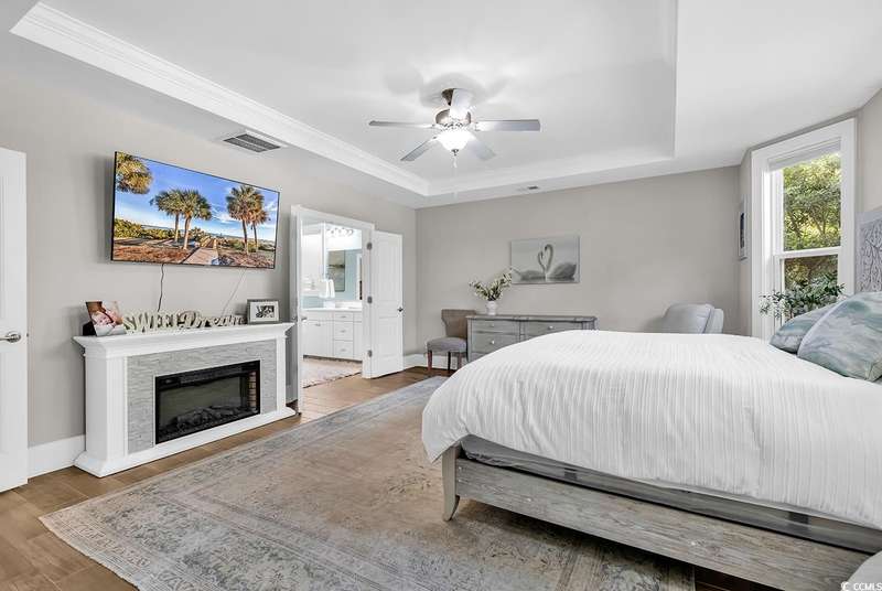 Elegant and spacious describes this 4 bedroom 2.5 bath home.BEAUTIFUL CUSTOM SALT WATER POOL. Gourmet Kitchen with new quartz counter tops, natural gas cooktop, new composite sink, stainless steel appliances. The Breakfast nook and kitchen both open to the main living area which makes for a perfect gathering space for friends and family. Primary bedroom on the first floor with large walk in closet. Formal dining room and office complete the main floor. Upstairs there is a second living area, bathroom and three spacious bedrooms. The backyard is a beautiful and private oasis complete with a custom saltwater and heated pool that can be controlled with your smart phone. There is a beautiful stone fireplace, and built in gas grill. Also tucked in the corner of this large lot is a secret garden! Great neighborhood just minutes from Market Commons! This home has it all!