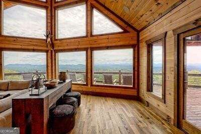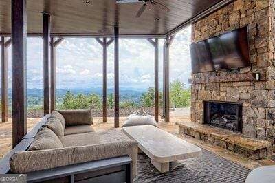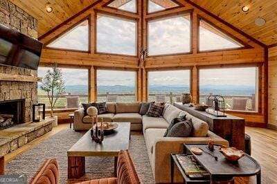 Perched in the peaceful North Georgia mountains, 506 Tower Rd in Mineral Bluff offers the perfect blend of rustic charm and modern elegance. This stunning, designer furnished 4-bedroom, 4.5-bath home boasts an open, airy layout with vaulted ceilings, rich hardwood floors, and expansive windows that fill the home with light while framing the breathtaking views. The gourmet kitchen is a chef's dream, complete with high-end appliances and custom finishes, ideal for both everyday cooking and entertaining. The spacious great room, centered around a cozy stone fireplace, provides the perfect spot for gathering with friends and family. Step outside to the sprawling deck, where the fresh mountain air and gorgeous views create a peaceful retreat for relaxation or outdoor entertaining. The primary suite is a luxurious sanctuary, offering spa-like amenities and private access to the outdoors, while the additional three bedrooms each have their own en-suite baths, providing privacy and comfort for family and guests. With proximity to world-class hiking, trout fishing, and the charming town of Blue Ridge, 506 Tower Rd is a mountain retreat where luxury meets nature, perfect for both relaxation and adventure.