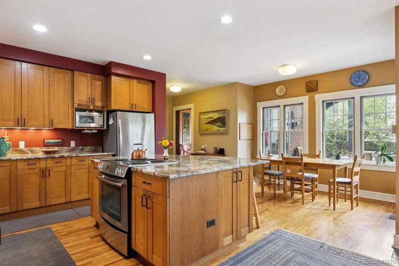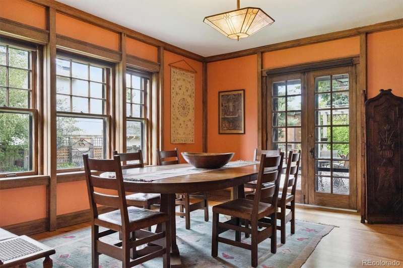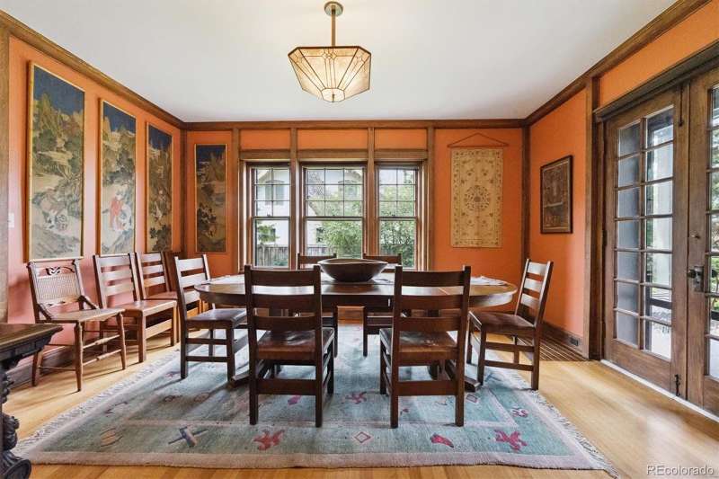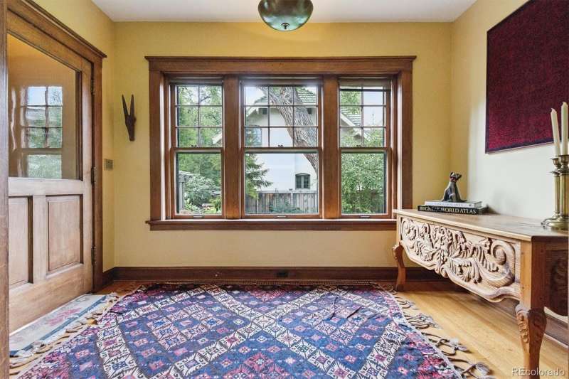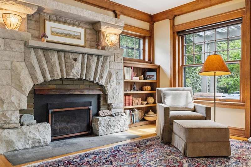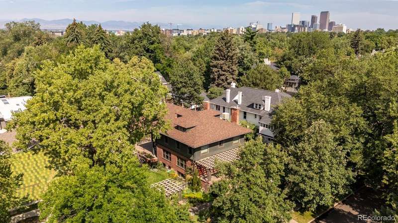 Discover one of Denvers most enchanting and cozy homes, nestled on a prestigious parkway street in the coveted Denver Country Club Neighborhood. This historic gem boasts a serene, expansive yard enveloped by stunning gardens, offering a peaceful retreat. Original Craftsman details and intricate moldings evoke the grandeur of a Pasadena mansion, seamlessly preserved throughout.The living room captivates with a striking stone fireplace and oversized double-hung windows that flood the space with natural light. The formal dining room features exquisite wood trim and double French doors opening to a spacious private patio. The kitchen, thoughtfully expanded, flows into a generous open family room with massive glass doors that lead to the patio, showcasing breathtaking views of the yard and gardens. Upstairs, find four bedrooms, three bathrooms, and a versatile bonus game room or office with vaulted ceilings. The lower level offers a spacious den with high ceilings, a second original fireplace, a kitchenette, a bedroom with an egress window, and a full bathideal for guests or extended living. Featured in the book Beyond the Bungalow, this home blends historic charm with modern convenience, just steps from the vibrant restaurants and shops of Cherry Creek.