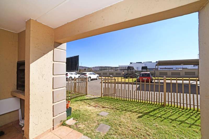 This charming garden unit offers a unique and practical layout, ideal for those starting out or looking to downscale. The open-plan living area comfortably accommodates both a dining table and a lounge suite, creating a welcoming space for everyday living. The upgraded kitchen features ample built-in cupboards, sleek granite countertops, and a cozy breakfast nook for casual meals. Two well-sized tiled bedrooms with built-in cupboards are complemented by two bathrooms?Çöone en-suite with a shower, and a family bathroom with a bath. A separate study nook adds extra versatility, perfect for working from home or quiet reading. Step out from the lounge onto a covered patio with built-in braai, overlooking a small private garden that?ÇÖs perfect for pets and outdoor relaxation. The unit includes one covered carport, and the secure complex offers 24-hour security and a dedicated kids?ÇÖ play area. Come view this inviting space and make your offer today.