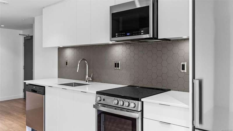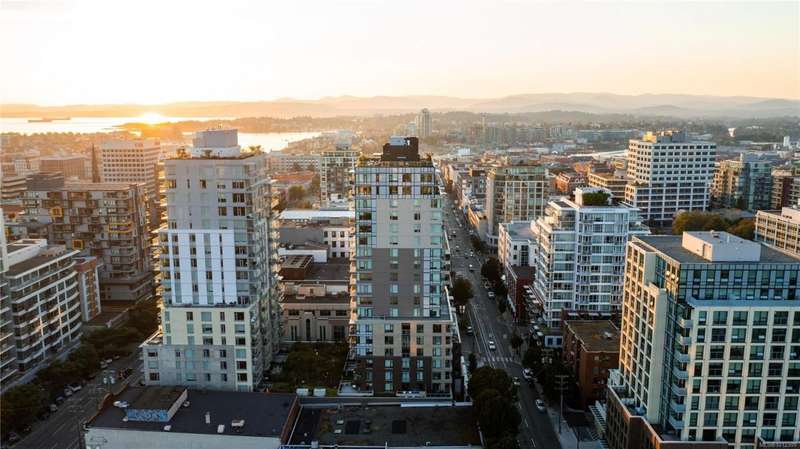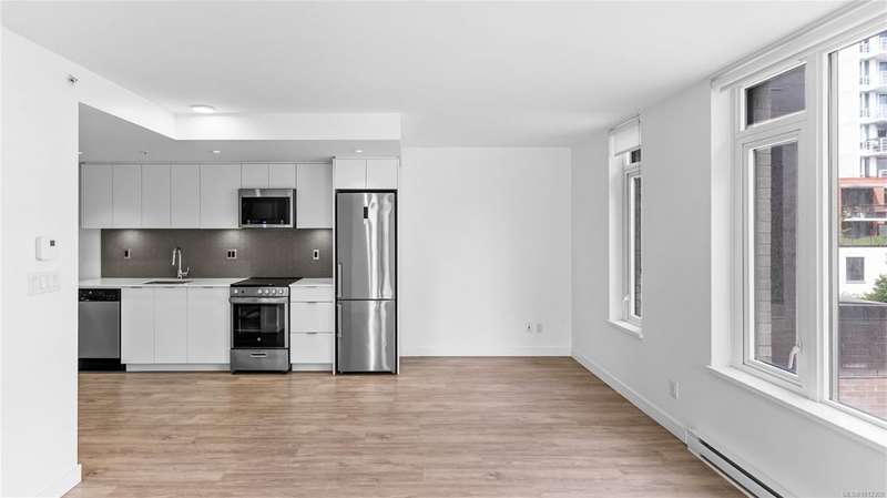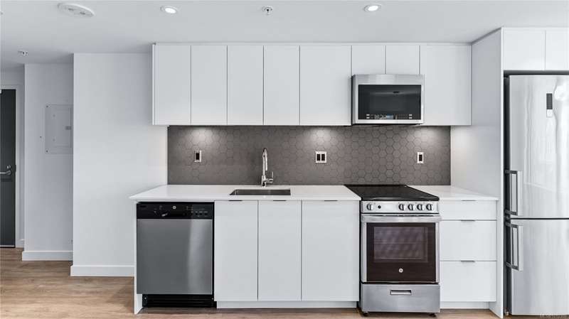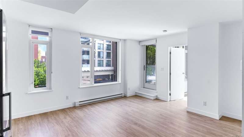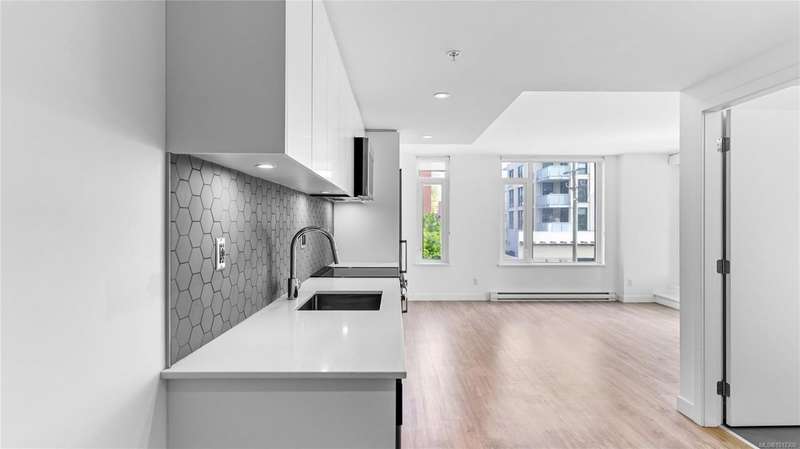OH NOV 2(11-1PM) LIVE DOWNTOWN, OWN WITH EASE! VIVID At The Yates presents an exciting opportunity for first-time buyers to step into homeownership in today's challenging market. Through HOUSINGHUB, qualified purchasers can access steel-and-concrete construction in the heart of Downtown?just steps from shopping, dining&every urban convenience. With only 5% down and a smart AHOP 2nd mtg (15?20%), ownership becomes both affordable& attainable.Unit 302 is a bright and functional 1 BD layout with generous space for decors. The standout feature is the wraparound terrace, perfect for sun and relaxing outdoors. These nearly new homes include the balance of the 2-5-10 New Home Warranty, GST already paid, and are finished with sleek modern details, stainless appliances, and contemporary design touches.The building itself offers inviting communal areas, outdoor spaces, and sweeping city and ocean views. Measurements approx. Immediate possession available. Purchasers must meet the requirements.