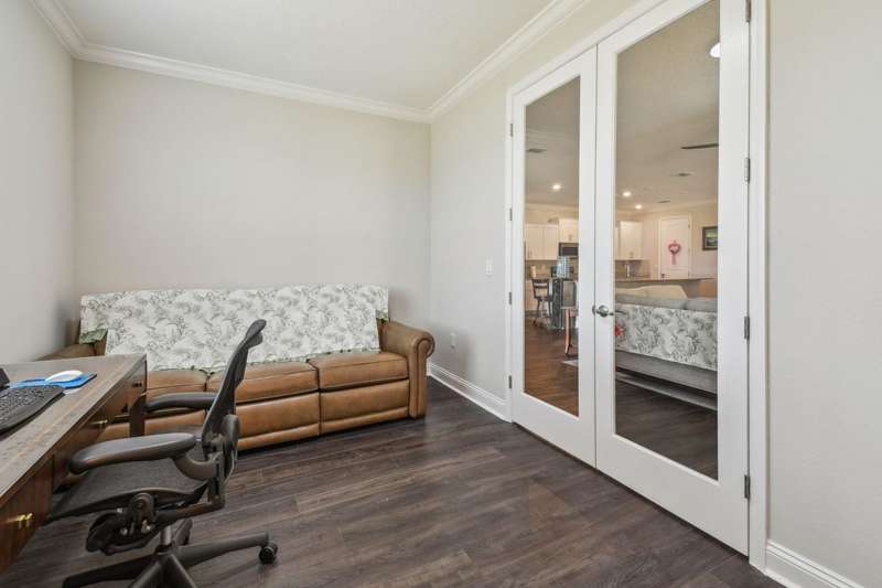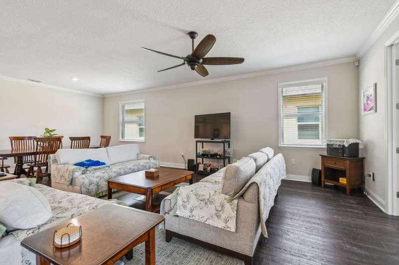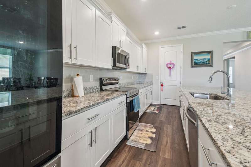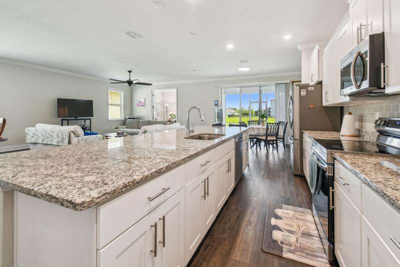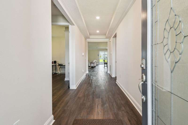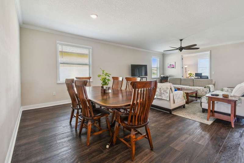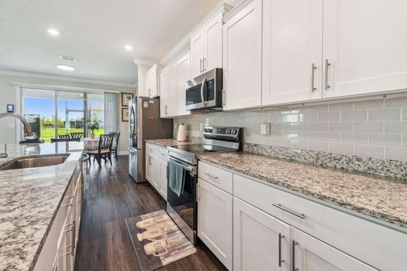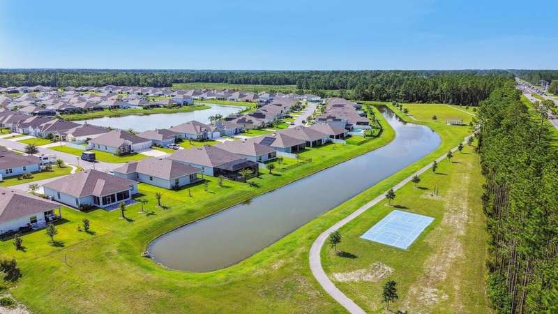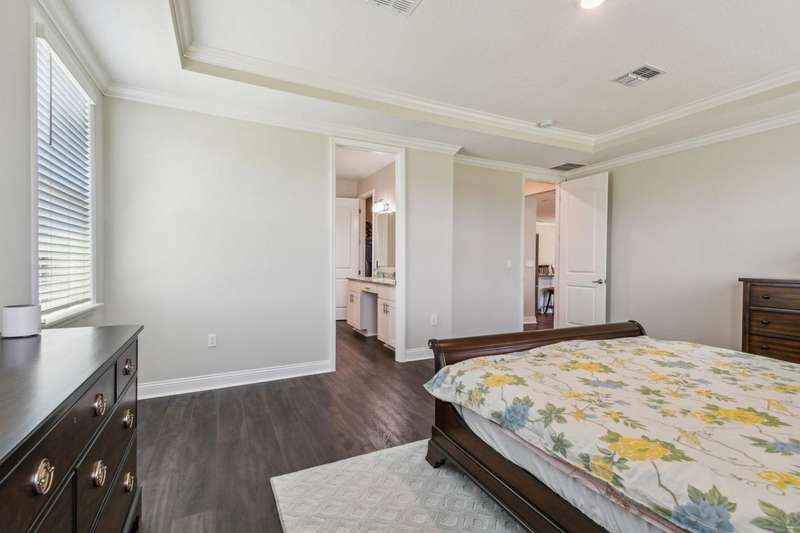 Welcome to this stunning 4-bedroom, 3 bath home with two primary suites in beautiful St Augustine, just minutes from downtown and I-95. This spacious residence features all vinyl plank flooring throughout and includes a versatile flex space perfect for a home office. The gourmet kitchen boasts a massive island, ideal for entertaining, and opens to a living space with serene water views. Enjoy your mornings and evenings on the screened lanai overlooking the water and nature. The main primary suite offers a luxurious retreat with a soaking tub, separate shower and large walk in closets. A 3-car garage includes an electric car charger for your convenience.The home is equipped with keyless entry, water filtration system, high speed fiber internet and whole house surge protector. Located in a community with low HOA that includes access to a pool and park. Dont miss this move-in ready home combining comfort, technology and a prime location.