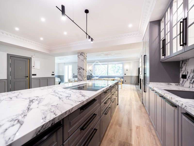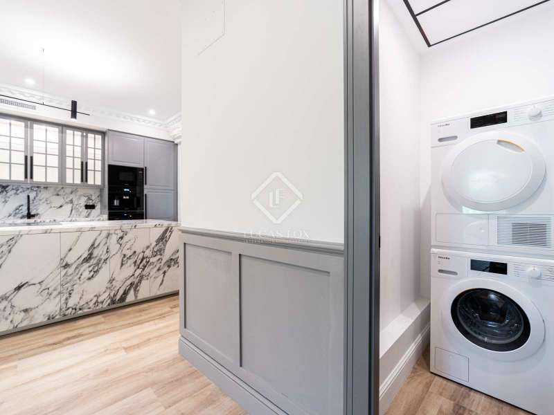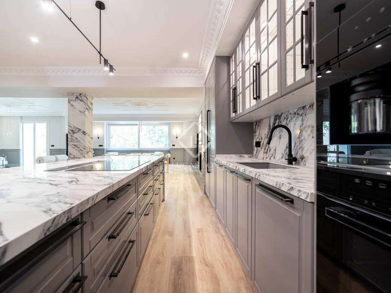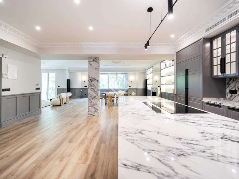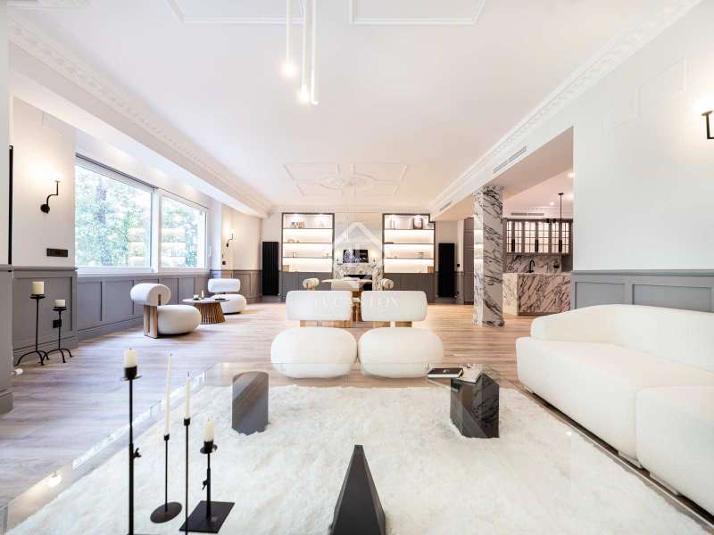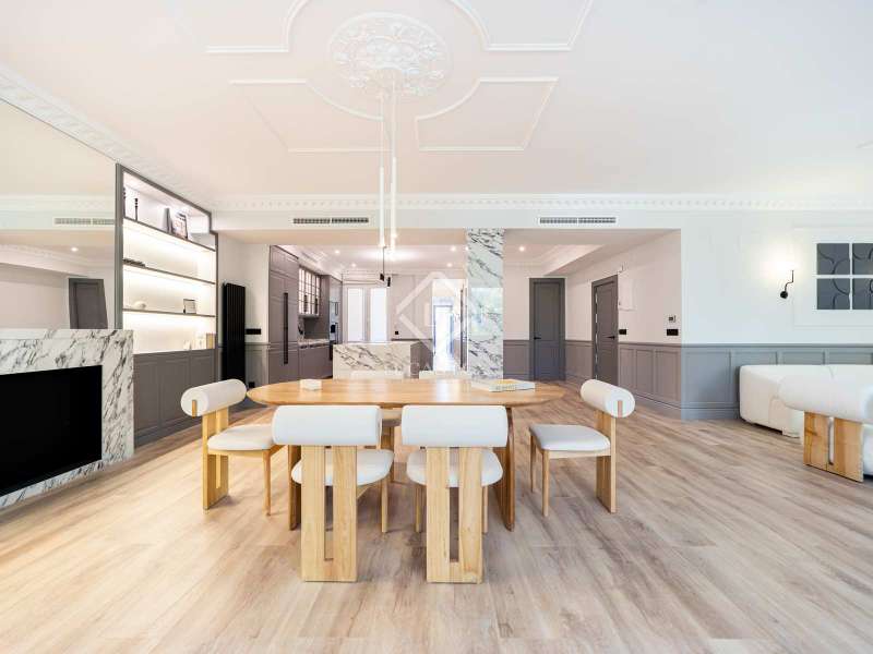 The apartment, completely renovated by design, has 261 square meters that are very useful, distributed in two large living areas , very bright and sunny as it has two balconies overlooking a tree-lined street, a dining room, an open kitchen, three bedrooms with three bathrooms ( the main one is large) and a separate washing machine area. The property, completely brand new, is fully furnished and has high-end appliances . The apartment has centralized hot and cold air conditioning and individual heating.