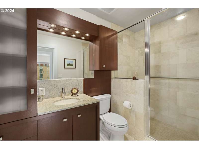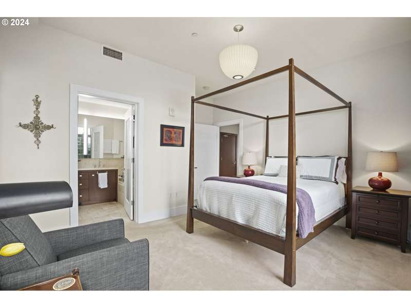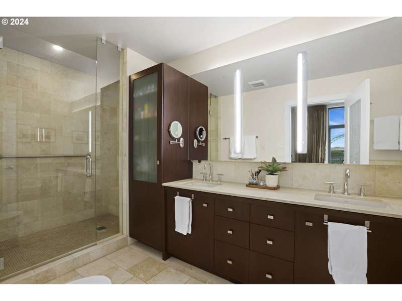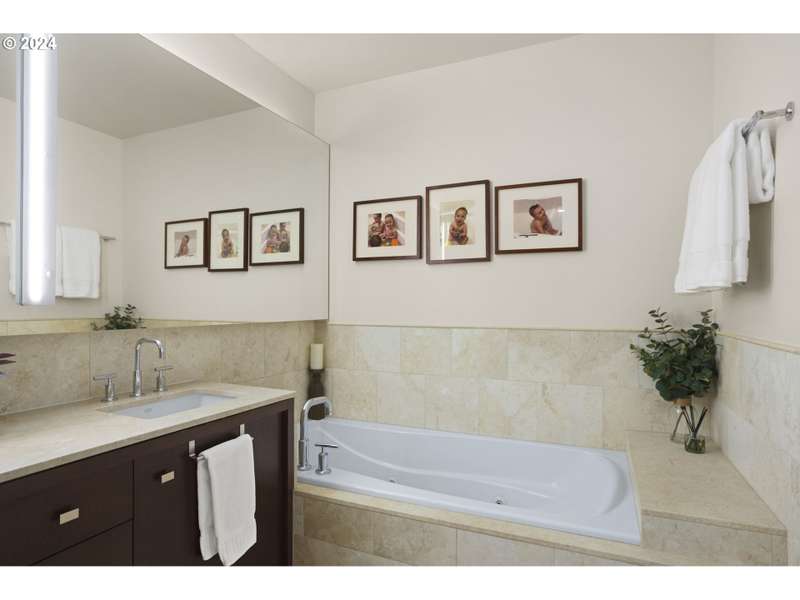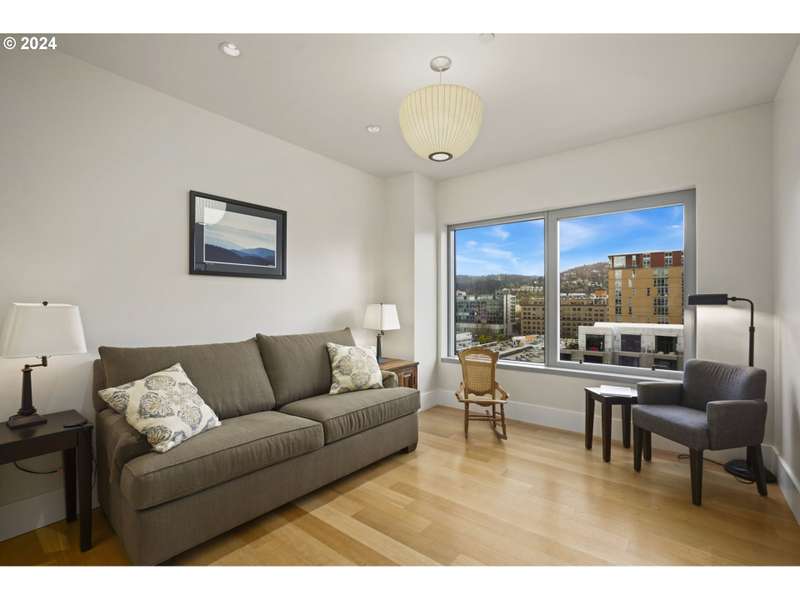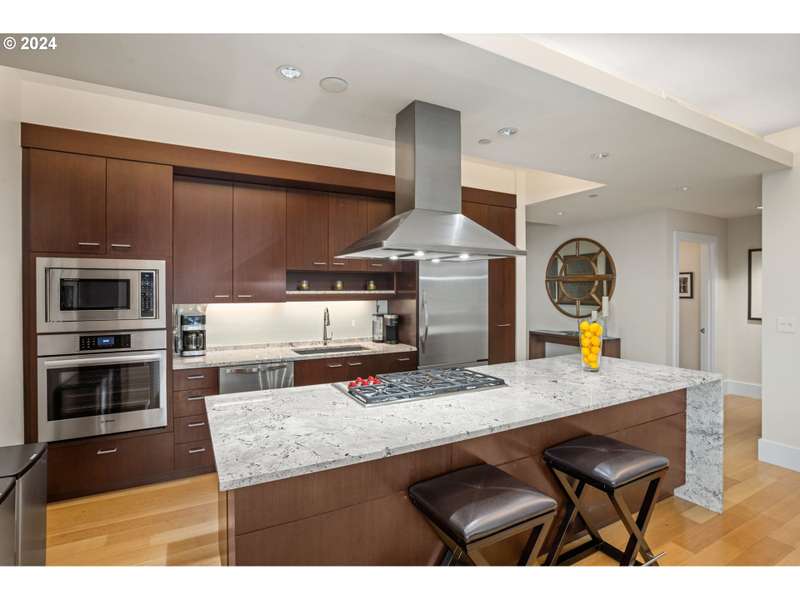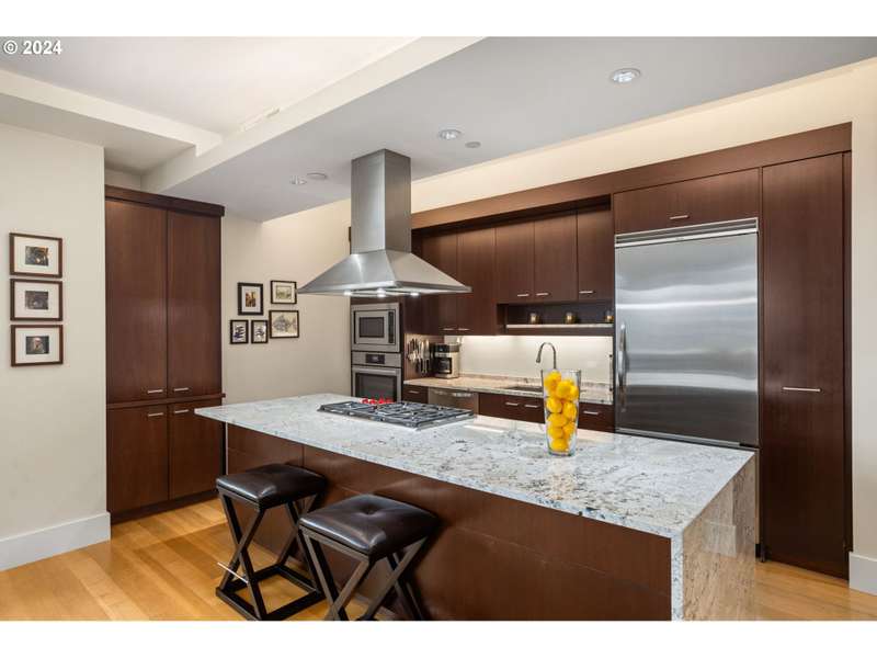 One of only two units of its floorplan type, Metropolitan 1008 is the ultimate urban residence. Expansive living and dining rooms are fantastic for entertaining! Living room features beautiful NW views of the west hills, Tanner Springs Park, and the river. It also includes custom built ins, a gas fireplace, and access to the large covered patio. Kitchen with huge island with cooktop, Neil Kelly cabinetry, and high end stainless steel appliances including a brand new oven. Primary suite features park views, a large walk in closet with custom closet organizers, and a luxurious ensuite bathroom with jetted tub, walk in shower, and marble floors and countertops. Two additional guest bedrooms offer lots of flexibility - use as guest rooms, office, or den! Includes two parking spaces with EV charging and 1 storage unit. Secure building with 24 hour concierge. Top notch amenities including two guest suites, gym, conference room, entertaining space, and temperature controlled wine storage room.