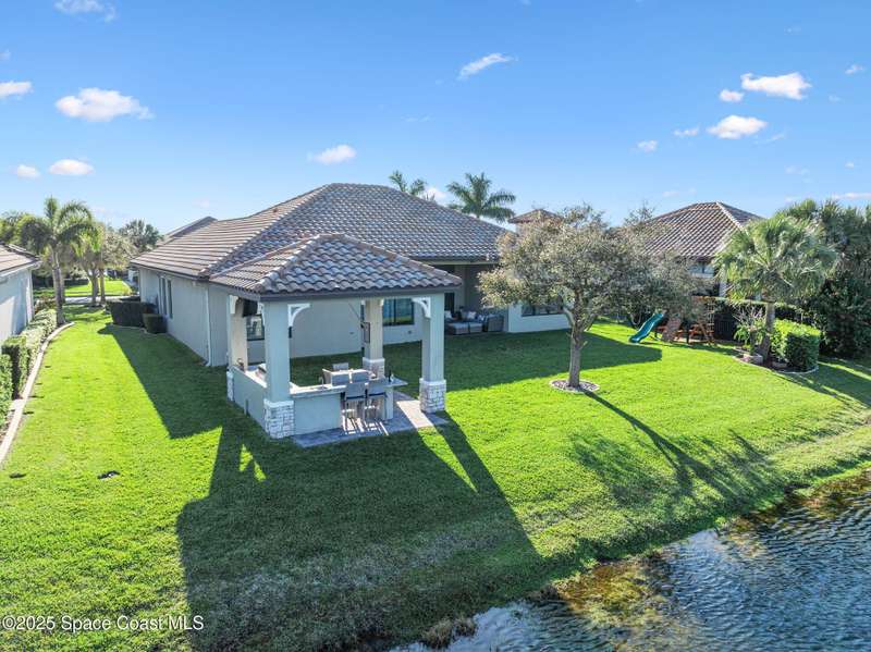 WOW! PRICED TO SELL! BEAUTIFUL 4 BR/3BA/3 car garage LAKEFRONT luxury home with multiple sliders and windows to take in one of the best views in St. Andrews Manor! Shows like a model home! This sought-after open, Great Room floorplan features a gourmet kitchen with an extra spacious kitchen island, upgraded kitchen cabinets & stainless appliances. This home also features tile throughout the main living areas, plantation shutters & abundant windows and sliding doors to enjoy your tranquil lake views! Recently renovated guest bedroom closets & laundry room feature amazing, custom shelving and storage! Great Room features a tray ceiling with wood beams -- and this modern design feature extends to the patio and summer kitchen too, where the owners have added glistening wood ceilings! The detached gazebo w/a matching tile roof, features a terrific summer kitchen with grill, refrigerator, and a granite counter top, plus dining table - perfect for your family & entertaining!