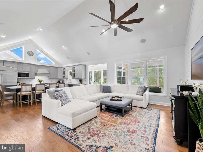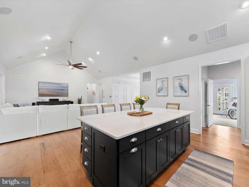 Nestled in the sought-after enclave of North Haven- a premier collection of only single-family homes with no thru traffic. This magnificent, fully furnished coastal-style residence offers turn key luxury living on the 4th tee. Just a short stroll to Bayside's unmatched amenities, this home places you in the heart of one of the East Coast's most celebrated resort communities- Bayside's award-winning, amenity-rich neighborhood, home to the prestigious Jack Nicklaus Signature Golf Course. Cruise in the 6 Seat Golf cart which conveys with property. From the moment you arrive, lush landscaping and a lighted covered front porch set the tone for the elegance inside. This stunning 5-bedroom, 3.5-bath home boasts premium upgrades throughout, including a whole-home surround sound system (inside and out), extensive custom millwork with shiplap and board & batten accents, tray ceilings, crown moldings, plantation shutters, recessed and timed lighting, and more. The heart of the home is the chef's kitchen, an entertainer's dream. Custom display cabinetry with under-cabinet lighting, expansive Quartz counters, a ceramic tile backsplash, oversized island with storage and breakfast bar, GE Monogram appliances, planning center, and walk-in pantry combine to create both beauty and function. The adjoining dining room, wrapped in crown molding and custom lighting, offers sweeping views and is ideal for both intimate dinners and festive gatherings. The open floor plan flows seamlessly into the great room, crowned with an 18' vaulted ceiling, dramatic shiplap feature wall, and walls of windows that flood the space with natural light. Step through atrium doors to the EZ Breeze three-season porch, where panoramic views of the 4th tee, pond, and Roy Creek await, an idyllic spot to relax or entertain. The main-level primary suite is a private retreat with tray ceiling, recessed lighting, dual walk-in closets with custom built-ins, direct access to the porch, and a luxe spa-inspired bath featuring dual vanities separated by a custom tower, a soaking tub, and a substantial tiled shower beneath a tray ceiling. Also on this level: a second bedroom (currently an office), an oversized laundry room, and a stylish powder room. The lower level offers a remarkable private living space, perfect for guests or multigenerational living. Behind French doors, discover a full kitchen, dining/living area, bedroom with ensuite, plus direct access to the outdoor living spaces. Two additional bedrooms, a well-appointed hall bath, second laundry center, and a custom motor enthusiast's dream garage, fully outfitted and truly a must-see, complete the lower level. The outdoor experience is equally impressive. Overlooking the golf course yet thoughtfully designed for privacy, this custom-built retreat features a built-in island kitchen, multiple gathering zones, lush planters, and tranquil fountains, all creating an atmosphere of relaxation and enjoyment. Bayside provides the ultimate maintenance-free lifestyle with a stunning array of amenities: multiple outdoor pools with splash zones and snack shacks, an indoor pool and hot tub, state-of-the-art fitness centers with classes, saunas, locker rooms, Har-Tru tennis courts, pickleball, basketball, sand volleyball, playgrounds, trails, dog park, community lakes, kayak storage, fishing pier, year-round security, and a beach shuttle. Dine at Signatures or 38 Degrees overlooking the bay, and enjoy concerts at the Freeman Arts Pavilion, all just steps from your door. North Haven community pool is for the use of Bayside homeowners and guests only- no vacation renters. Extensive list of upgrades and improvements is available in the documents section. Rear yard is eligible to be fenced with black aluminum fencing and a private pool. Additional parking is permitted on the clamshells for guests.