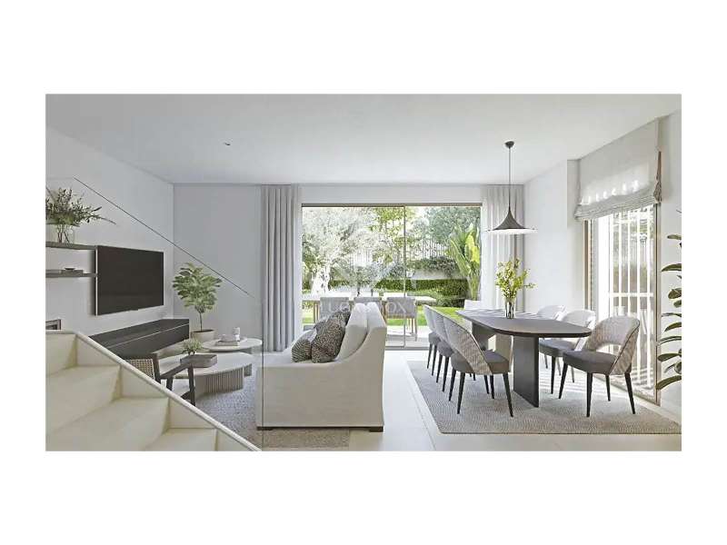 Lucas Fox is pleased to present the new build Virentia development , offering terraced and semi-detached houses in the Campolivar development in Godella, Valencia. This is a low-density development with communal areas, outdoor spaces, and green areas, all in a peaceful setting surrounded by nature. Architect Ramón Esteve, one of Spain's most renowned architects, was responsible for the design of the homes. The homes feature three- and four-bedroom townhouses, each with a private garden and communal areas with a pool, as well as private parking at street level. The interior features a contemporary design with straight lines, open spaces, and neutral tones that maximize spaciousness. Large floor-to-ceiling windows, which not only offer pleasant views but also allow abundant natural light to enter, also feature a prominent use of fine materials such as wood. The homes feature top-quality finishes, including rectified porcelain flooring, ceramic tile floor in wet areas , and LED lighting. They are highly energy-efficient and sustainable, with a high energy rating, aerothermics , and photovoltaic panels to reduce consumption. They also benefit from excellent thermal and acoustic insulation for greater comfort and energy savings, with aluminum exterior carpentry with thermal break and double glazing, as well as a ducted hot-and-cold air conditioning system and underfloor heating for total comfort. The kitchens are fully equipped with wall and base units, high-efficiency appliances , a sink with a single-lever faucet, and a ceramic or similar countertop. The modern bathrooms include designer fixtures and thermostatic faucets. The private development features green areas, with perfectly designed landscaping featuring native, low-water-consumption plant species and an optimized irrigation system. A customization service is offered, allowing you to select finishes for your kitchen cabinets and countertops, choose different types of settings, and upgrade your security and technology systems. Contact us for more information.