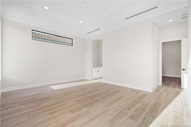 This Co?st?l Mod?rn ?ff?r??ng fr?m G??O Homes with fanta??ti?? amenities is now available. Expansive twelve ft. high ceiling with oversized storm guard windows & doors announce you have arrived. Family room, kitchen, dining, club room, covered patio and pool create a one of kind living experience. The kitchen features Cafe series appliances, natural gas cooktop, 42'' double door frig., build in convection wall oven, quartz counter tops, stacked upper cabinets with glass accent doors. The primary suite features a morning bar, a Carrie Bradshaw style display closet with custom shelfs, a 2nd walk-in, 12 ft high tray ceiling & is privately located on its own wing. Primary bath has double vanities, soaking tub & premium shower. Two Guest suites each have private baths & Walk-in closets.