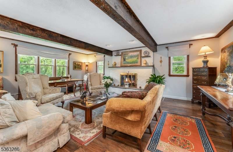 Set on a serene and private 1.8-acre lot, this enchanting 1940s Colonial offers a unique blend of classic character and modern convenience. Featuring 4 spacious bedrooms and 2.5 baths, this home is rich in warmth and charm with hardwood floors throughout and timeless architectural details. The formal living room is perfect for entertaining, while the inviting family room boasts beamed ceilings and a raised-hearth wood-burning fireplace - ideal for cozy gatherings. The sunlit eat-in kitchen provides ample space for everyday living and casual dining. Upstairs, the primary suite is a true retreat, featuring a beamed ceiling, walk-in closet, and full en-suite bath. This property also includes a 2nd house a delightful 2-bedroom accessory cottage - perfect for guests, or potential rental income - plus a detached two-car garage with loft space, and an additional outbuilding with high ceilings, ideal for car enthusiasts, hobbyists, or contractors. Outdoors, garden lovers will appreciate the mature landscaping, private courtyard gardens, and raised bed vegetable plots, while summer days can be spent relaxing by the inground gunite pool. A rare find offering charm, space, and versatility - all in a peaceful setting. Cottage Sold AS IS