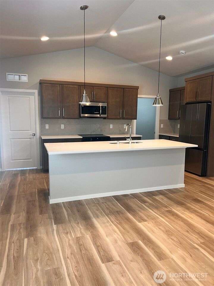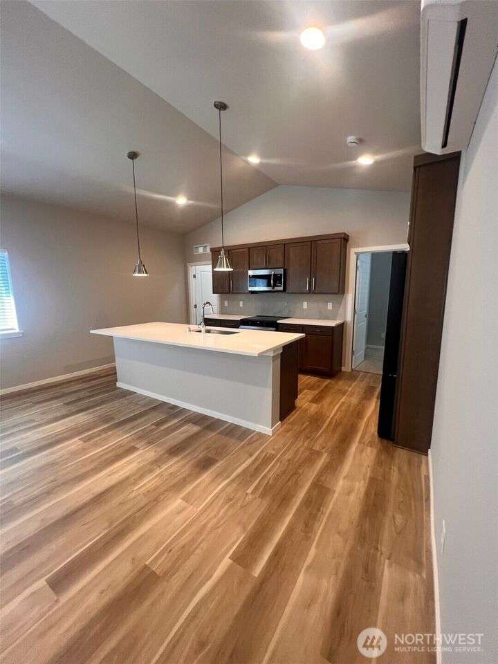 Brand new 3 bedroom, 2 bathroom one-story home within walking distance to park, waterfront, Post Office, gas station/store & close to LakeLand Village Golf Course & SR 3. Great room concept with large island kitchen, stainless appliances & LVP flooring throughout kitchen and dining rooms. Primary bedroom with a walk-in closet and primary bathroom. Covered front & back porches. Peek a boo view from the back porch/deck of North Bay. Rent this home before school starts. 40 +/- minutes to Bremerton & SR 16. First month & security deposit due at move-in. Lease term 12 months. Owners will accept a small dog or cat w/non refundable pet deposit, see remarks.