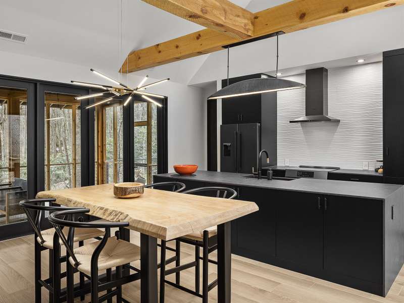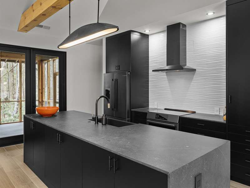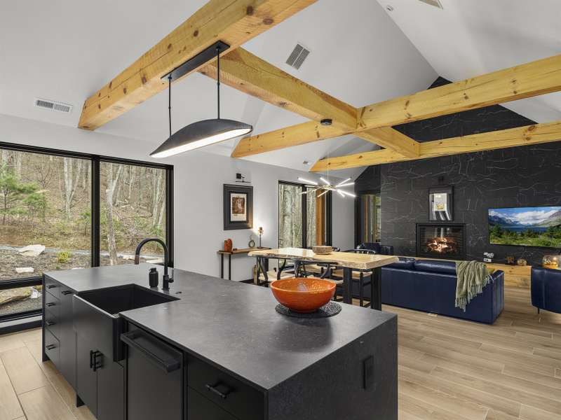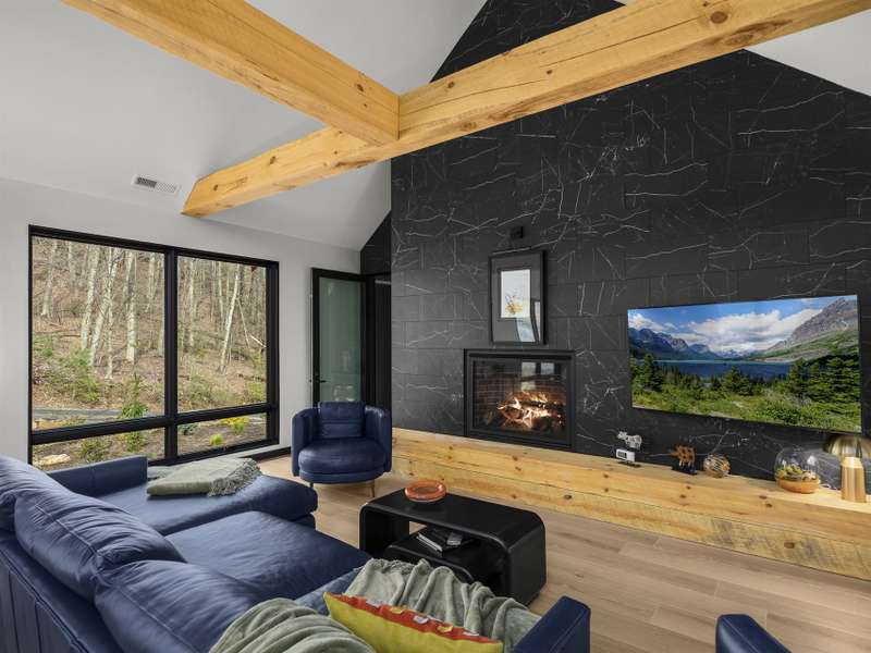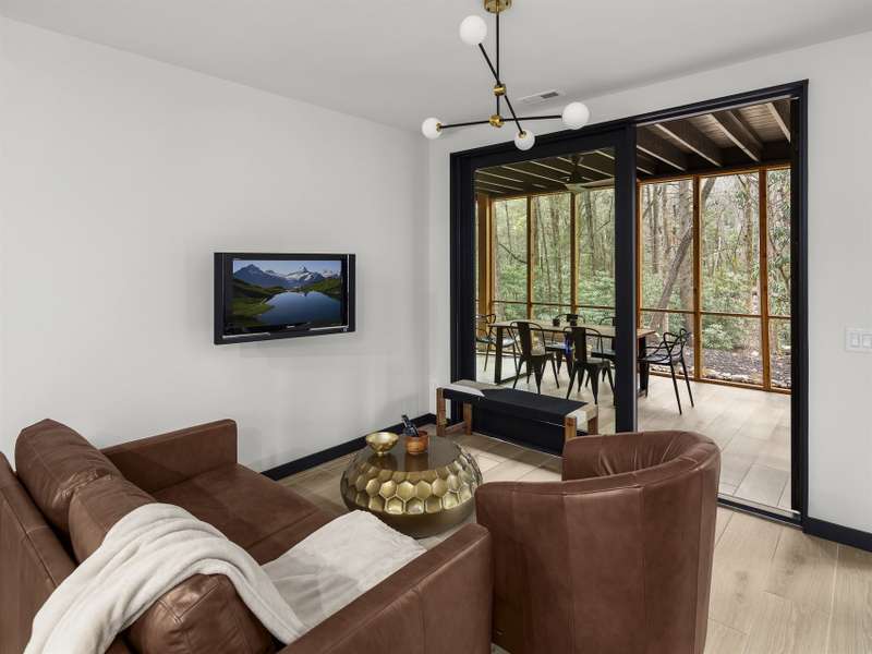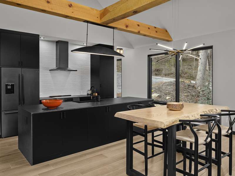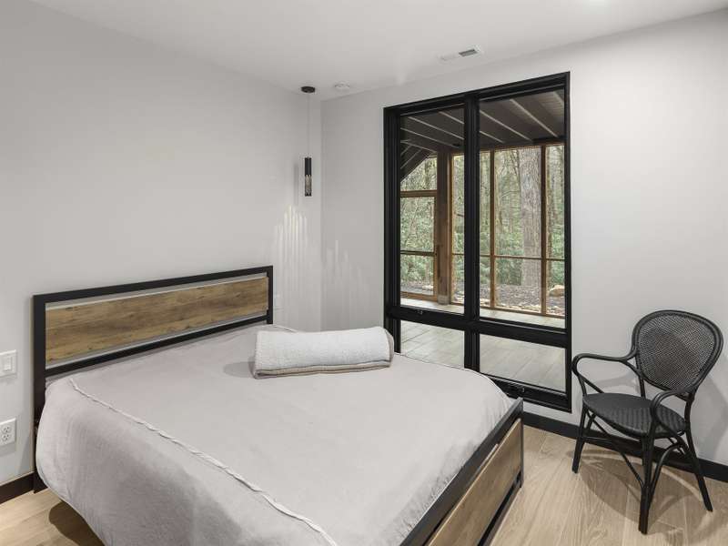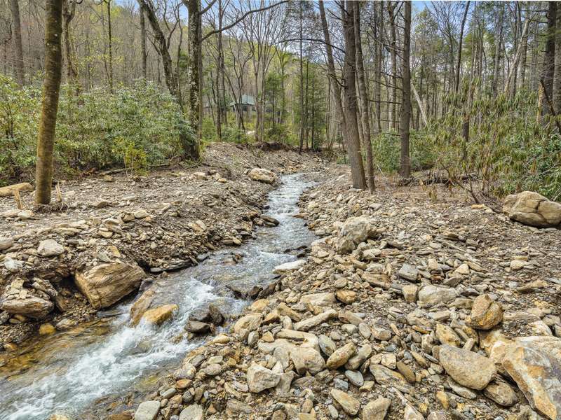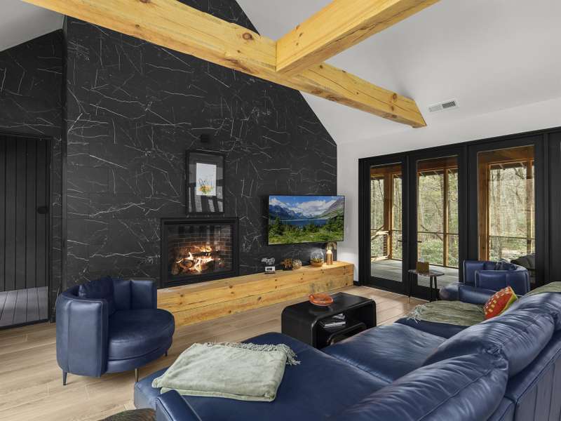 **Seller Financing Available** Nestled within the gated Laurel Ridge community, this sleek contemporary custom home offers a unique blend of luxury and privacy, just 12 minutes from downtown Black Mountain. Professionally landscaped grounds blend seamlessly with the natural surroundings. Inside, the great room welcomes you with a soaring vaulted ceiling adorned with solid wood beams, floor-to-ceiling ceramic tile accents, and expansive windows. The chef's kitchen features Dekton countertops, custom cabinetry and sleek black appliances. Outside, two fully screened patios beckon for alfresco dining or leisurely afternoons, accompanied by the gentle sounds of a nearby creek. The main-level primary suite boasts a spa-like bath and spacious walk-in closet. Descending to the terrace level, discover a separate guest suite and full apartment with a guest room and office space. Additional features include a two-car garage wired for an EV charger. Experience the pinnacle of luxury mountain living at this remarkable property.