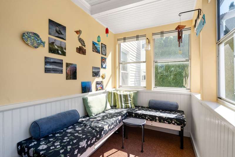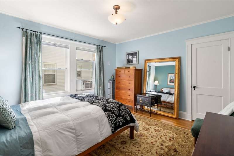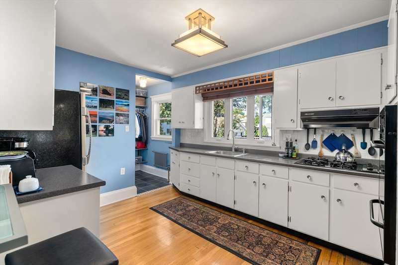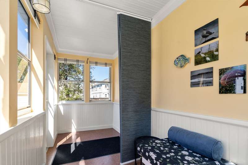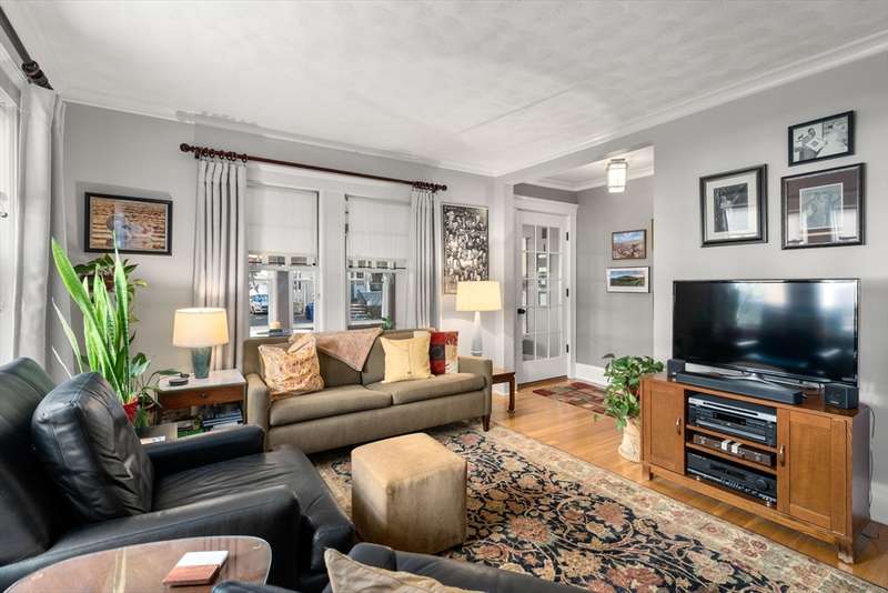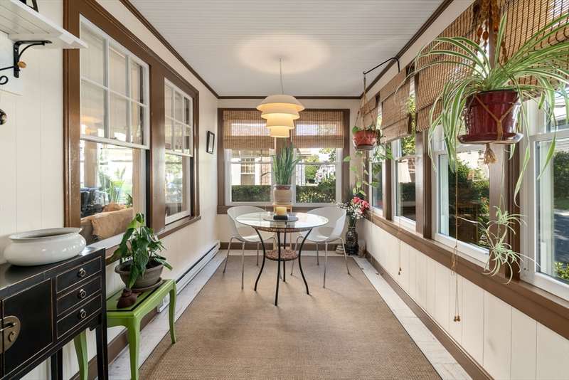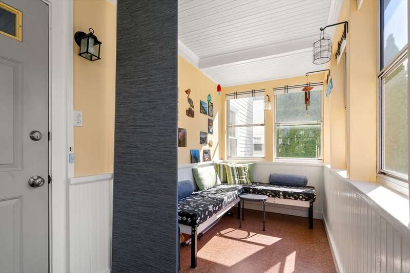 Move right into this beautifully kept first-floor 2-bedroom, 1-bath condo on a charming tree-lined street! Enjoy an enclosed, insulated, and heated front porch plus a bright, fully enclosed back sunroom perfect for year-round use. The kitchen with eating area adjoins a mudroom with slate flooring. Formal living and dining rooms feature hardwood floors throughout, with ample closet and basement storage. The bathroom offers radiant-heated slate floors, slate shower tiles, limestone countertops, and new fixtures. Custom shades included in bedroom and kitchen; dining and living room shades; bamboo shades in second bedroom and front porch; curtains not included. Shelving in front room and mudroom available for purchase. Updates: 2-year-old washer, newer water heater, Mass Save upgrades, asbestos removed 2023, back porch re-shingled 2023. Shared paver patio with gas hookup for grilling. Prime spot steps to Moody St, near Rte 20 & I-95. Property sold as is; buyers please do your due diligence