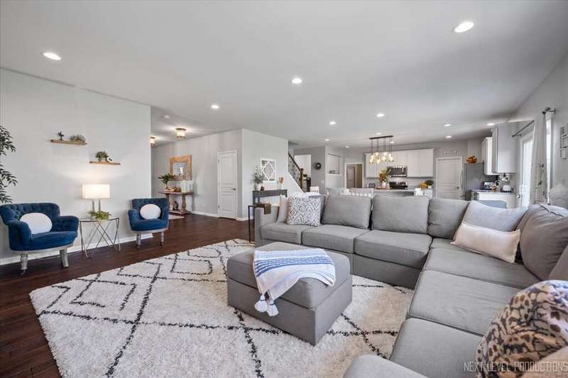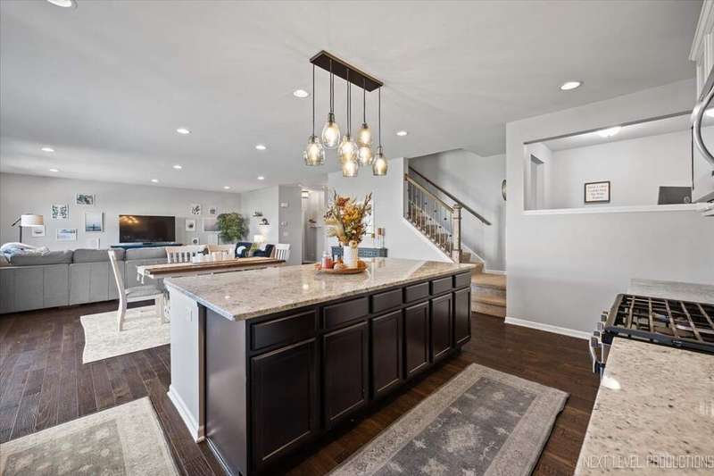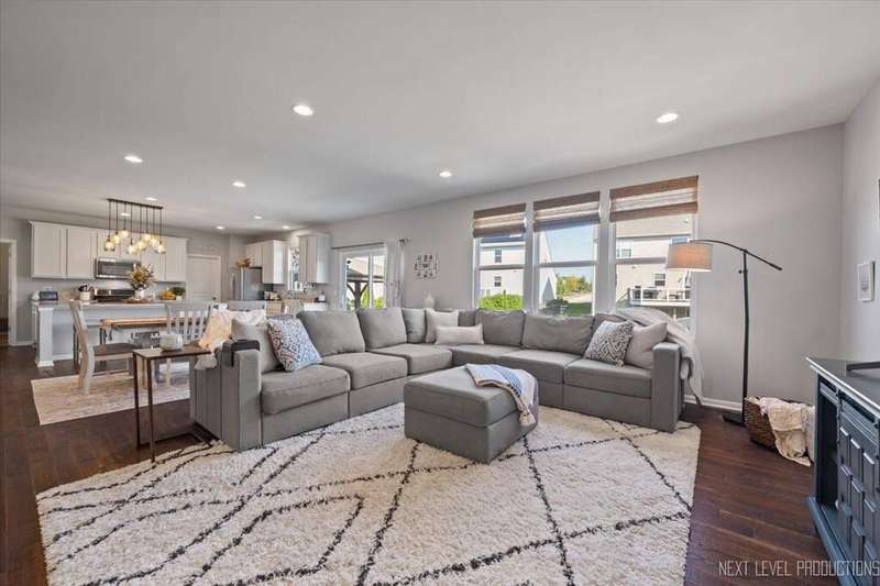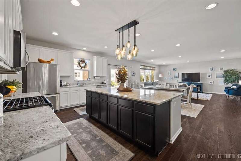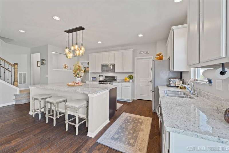 Beautiful home in THE TRAILS OF SILVER GLEN WITH ST CHARLES SCHOOL DISTRICT! Oversized family room that's open to kitchen and homework nook. The gourmet kitchen has stainless appliances, large island, white cabinetry and walk-in pantry. The builder designed this home with "flex space" to help buyers maximize useable space. Separate living room on main level and oversized mudroom. Upstairs has convenient laundry room and a loft that could be a playroom, office or media room. The 2nd floor boasts 4 large bedrooms, a huge master walk-in closet and tranquil, master bathroom with walk-in shower w/body sprays and rain shower. Extensive landscaping with gorgeous, stone entrance, built in professional DCS (brand) 36" natural gas grill and matching fridge, gas start firepit, 750 sqft patio, pergola with electricity and fenced yard with vegetable garden. Home has a full, finished deep pour basement with rec room and full bath! 3 CAR GARAGE!