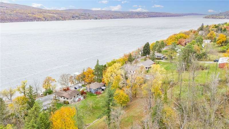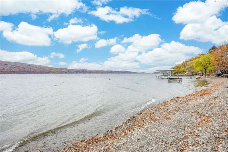 OPEN HOUSE SATURDAY 11/8 FROM 1:00PM - 2:30PM. ONCE IN A LIFETIME OPPORTUNITY TO BE ON CANANDAIGUA LAKE ****FOR****UNDER***$1 MILLION****!!!! AMAZING **TIMBER**FRAME**ORIGINAL**LINDAL-DESIGNED**CABIN, ***64*** FEET OF LAKE FRONTAGE, HUGE .437-ACRE LOT, MASSIVE WATERFRONT DECK, 40' DOCK W/HOIST, & PLUS REAR DECK! OPEN CONCEPT FLOOR TO CEILING POST AND BEAM FAMILY ROOM / KITCHEN, WALL OF WINDOWS WITH LAKE VIEWS AND DIRECT ACCESS OUT TO HUGE POST AND BEAM DECK BIG ENOUGH FOR DINNERS/LOUNGING, BOARD GAMES, AND SIPPING COFFEE OR COCKTAILS! COZY FLOOR TO CEILING GORGEOUS ORIGINAL OAK WOOD INTERIOR WALLS ALL THE WAY UP TO VAULTED & BEAMED CEDAR CEILINGS WITH GLASS WINDOW GABLES!!! WOOD-BURNING STOVE (PLUS HEAT), CEILING FANS ADDED TO KEEP THINGS COOL, AND AIR CONDITIONING JUST IN CASE! 3-BEDROOM CABIN SLEEPS 8-COULD FIT MORE WITH MORE BUNKS! KITCHEN W/SS FRIDGE, MICRO, HUGE 6 BURNER GAS STOVE, ORIGINAL OAK CABINETRY!!! BACK DECK BIG ENOUGH FOR AL FRESCO PRIVATE DINING-JUST IN CASE YOU GET SICK OF THE WATER VIEWS UP FRONT! CUSTOM WINDOW TREATMENTS, ALL BEDROOM, FAMILY ROOM, AND OUTSIDE FURNITURE INCLUDED!! HUGE STORAGE IN LOWER-LEVEL GARAGE FOR ALL THE KAYAKS, CANOES, SKIS, LILLY PADS/FLOATIES, ETC ? COULD BE MADE INTO TEEN SPACE/MAN CAVE FOR MORE SF!!! CURRENT OWNERS INSTALLED HOT WATER HEATER (2024), WATER PUMP (2025), NEW FARM SINK IN KITCHEN, BEAUTIFUL LANDSCAPING UPGRADES W/ JAPANESE MAPLES & STONEWORK SURROUNDS, & NEW DOCK DECKING. LINDAL HOMES IS KNOWN AS THE BEST & BIGGEST NORTH AMERICAN MAKER OF CUSTOM POST AND BEAM HOMES SINCE 1945!! ALMOST HALF ACRE LOT BIG ENOUGH FOR CAMPFIRES/GAMES/SMORES NOW, AND EXPANSION LATER! EASY TO WINTERIZE OR MAKE YEAR-ROUND! DEAD END STREET MEANS NO THROUGH TRAFFIC FOR LITTLES AND 4-LEGGED FAMILY MEMBERS! 20 MINUTES TO CMAC/WEGMANS, 10 TO NAPLES FOR GRAPE FEST/RESTAURANTS, 2 MIN TO GROCERY IN VINE VALLEY! SPEND MERE MINUTES OR DAY TRIP TO WINERIES AND BREWERIES THROUGHOUT THE FINGER LAKES REGION!!! BRING YOUR LINENS AND JUST MOVE RIGHT IN, YOU FINALLY DID IT! 2025 = NO REGRETS! PLEASE WEAR YOUR PARKAS FOR OPEN HOUSES ? CABIN JUST WINTERIZED!!!