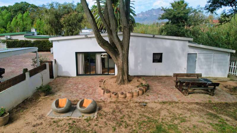 Welcome to private, peaceful living just outside the buzz of town. This charming home offers the best of both worlds! Nestled next to a beautiful estate in Wellington, you'll enjoy tranquil surroundings with the convenience of being just minutes from top schools, shops, and other amenities. Step into a light-filled, open-plan home that boasts stunning vineyard views and a large, shady tree, perfect for relaxed Sunday braais with friends and family. The home features a modern kitchen with laminated flooring, ample built-in cupboards, and a clean, functional layout ideal for everyday living and entertaining. The spacious main bedroom is large enough to be divided into two separate rooms if needed, while the additional bedroom offers more laminated flooring and plenty of cupboard space. The modern bathroom includes both a bath and a shower, designed for comfort and style. In the heart of the home lies a generous family room with a built-in braai?Çöan ideal space to entertain guests or host family gatherings. A bonus feature is the additional area with exciting potential: renovate it into a third bedroom with an en-suite or transform it into a self-contained flatlet complete with its own bathroom and kitchenette?Çöperfect for guests, extended family, or rental income. This unique property doesn?ÇÖt come on the market often?Çödon?ÇÖt miss your chance to make it your dream home!