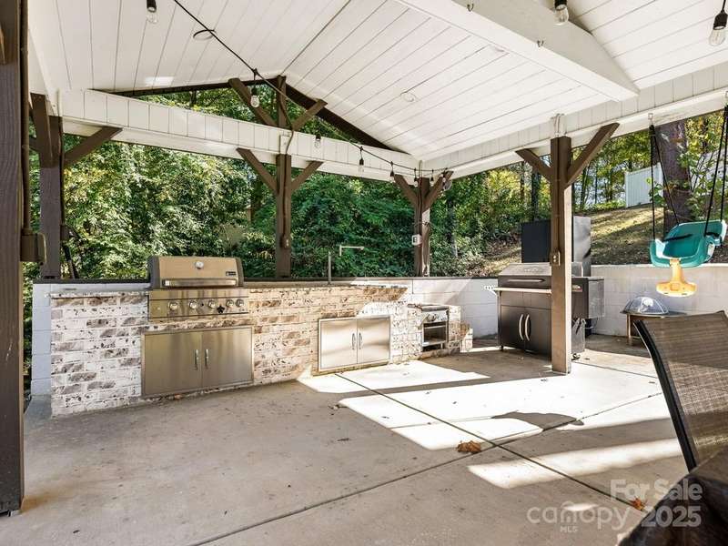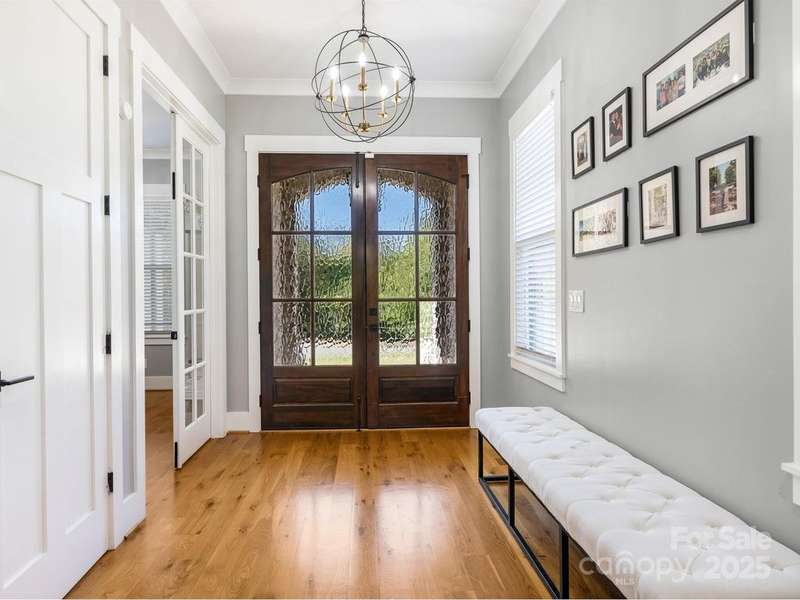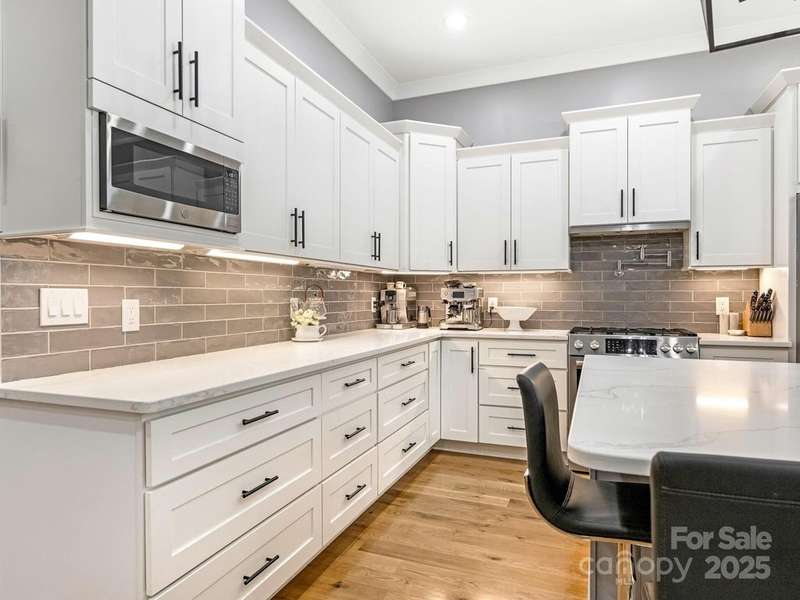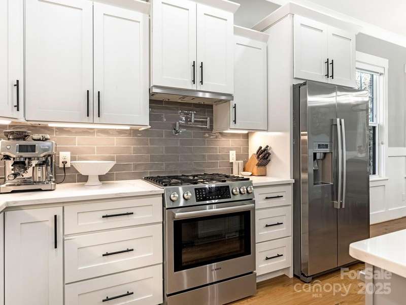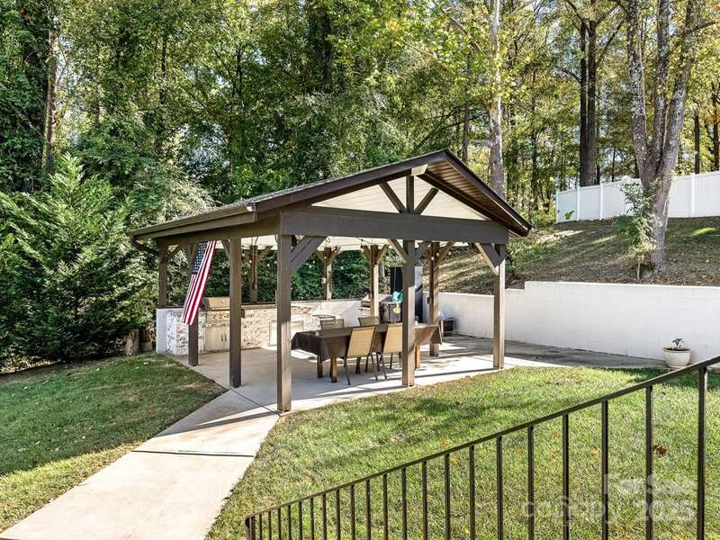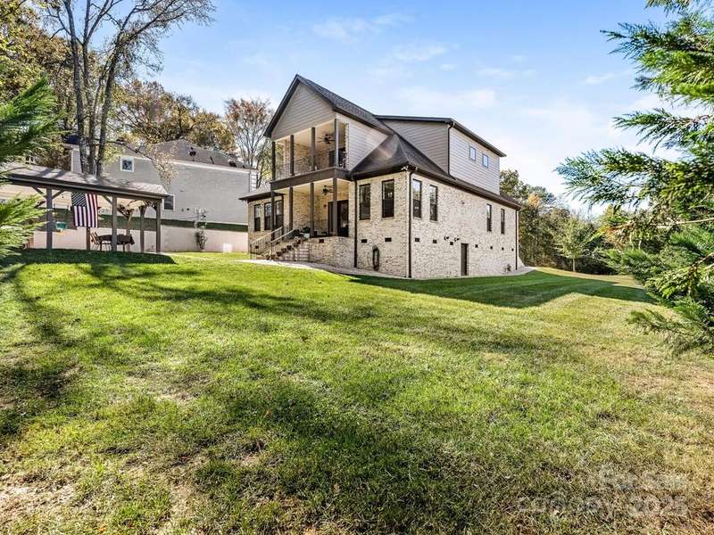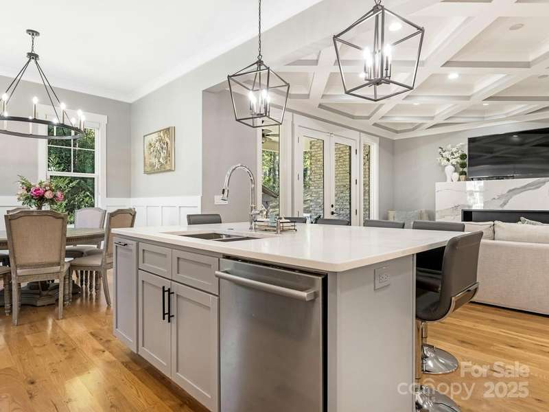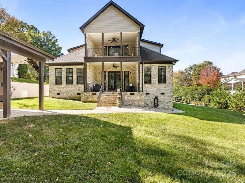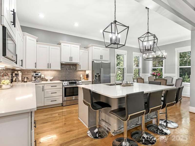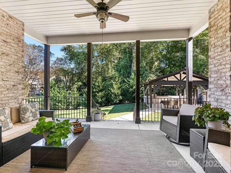 Traditional two-story light brick home combines classic architecture with modern open living spaces, enhancing natural light and creating an inviting atmosphere perfect for daily life and entertaining. The great room features a coffered ceiling, a Gas fuel fireplace with a marble-like porcelain surround, and access to the covered back porch overlooking the private backyard. The bright, open kitchen boasts an oversized seated quartz island with pendant lighting, under-cabinet lighting, Bosch stainless steel appliances, GE microwave, a dual-fuel range (gas cooktop and electric oven), a stainless pot-filler, quartz countertops, a light gray subway tile backsplash, and white cabinets with ample storage. The home includes two primary bedrooms plus two additional bedrooms and a bonus/bedroom. It has 4.5 bathrooms. White oak hardwood flooring runs throughout, complemented by modern lighting, quartz countertops and vanities, and marble tiles in the bathrooms. The rear of the home features two covered porches with ceiling fans and a gazebo with a brick-built-in gas grill and Bunsen burner, stainless steel built-in storage cabinets, and plenty of space for outdoor seating and dining furniture. The private backyard, with mature landscaping, is a great place to entertain or watch the deer and other wildlife.Tankless Water Heater, Gas furnace, Central Air, Trane Smart thermostat, Sealed crawlspace.