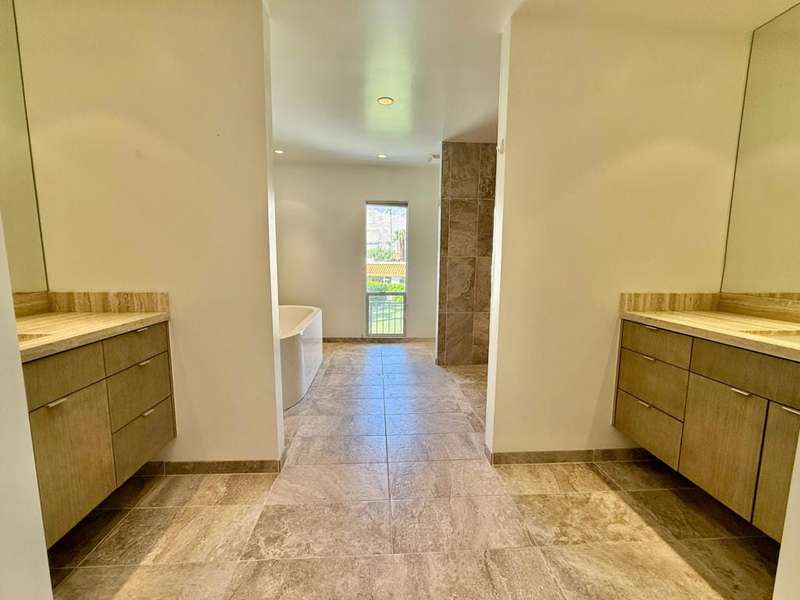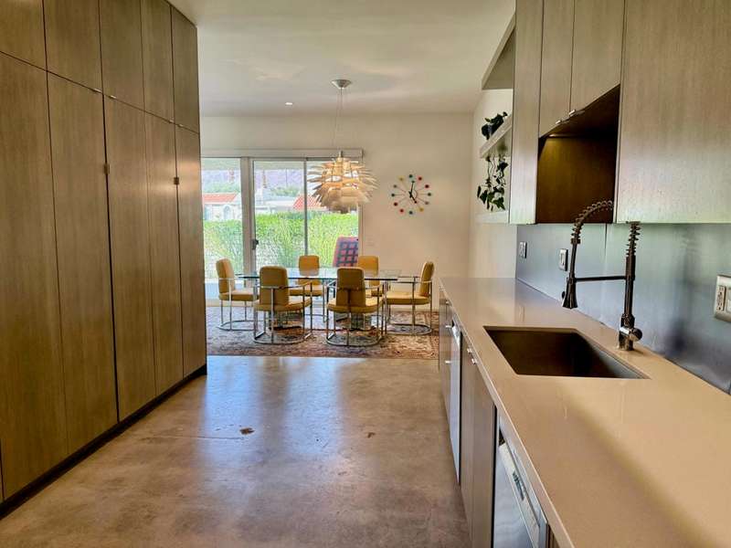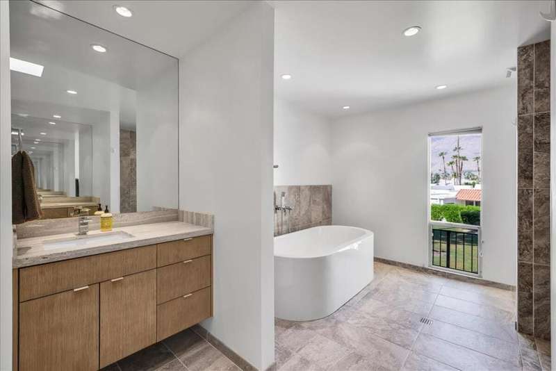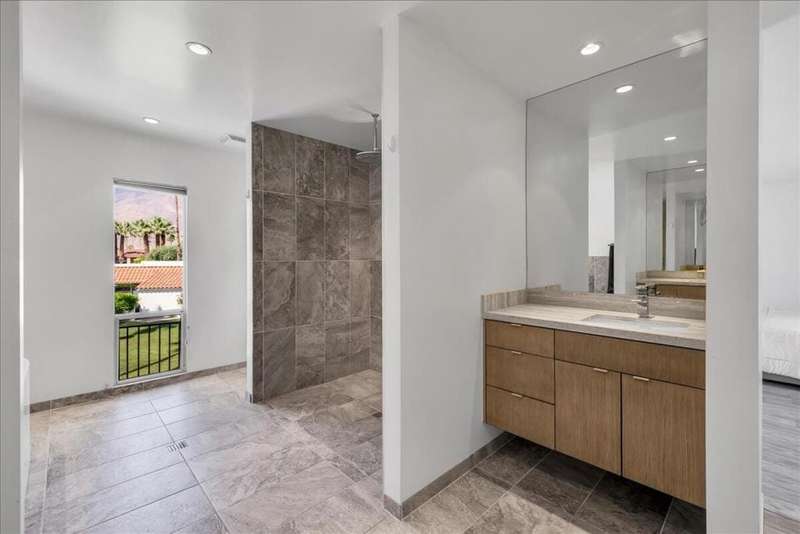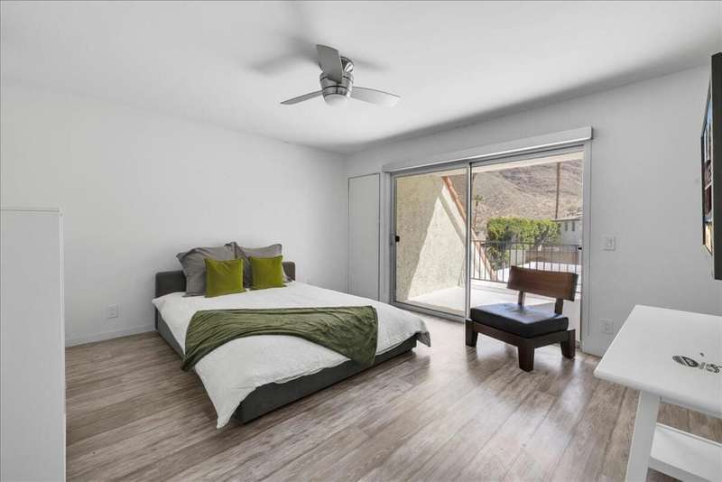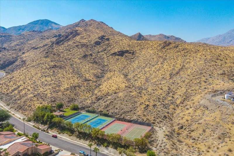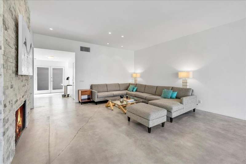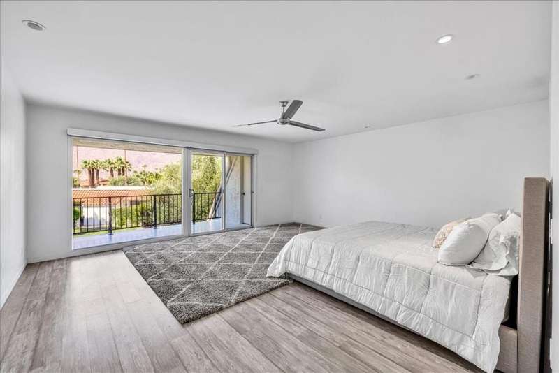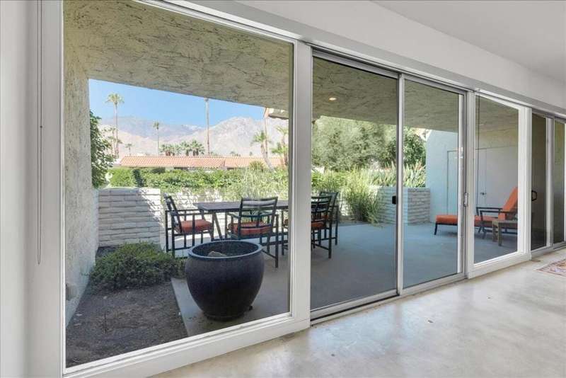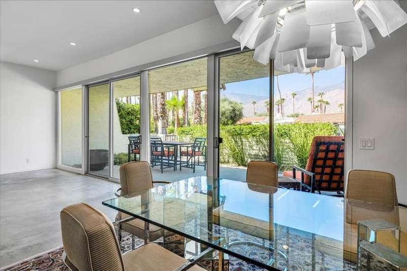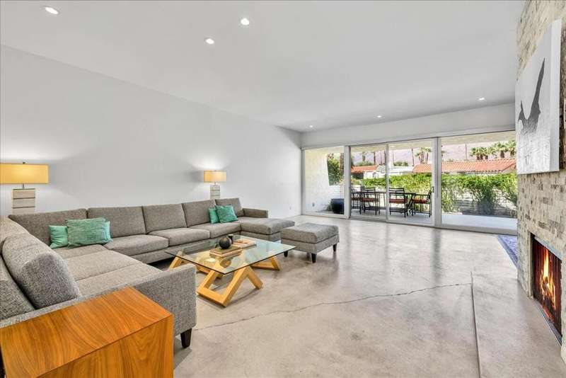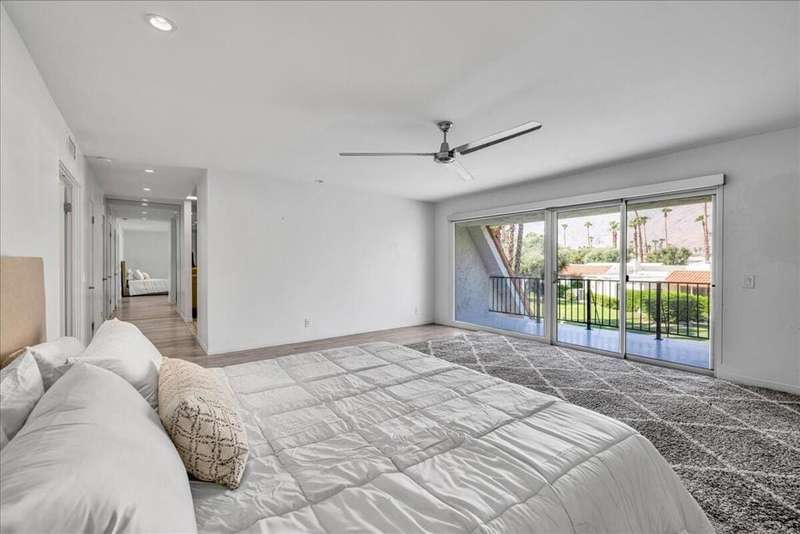 An exceptional value in prestigious Andreas Hills, South Palm Springs' premier luxury neighborhood, known for its dramatic mountain views, peaceful setting, and direct access to scenic hiking trails. This spacious 3BD/3BA condo offers nearly 2,600 square feet of thoughtfully updated living space with timeless style and quality craftsmanship.Enjoy uninterrupted panoramic views thanks to underground utilities--a rare and sought-after feature in Palm Springs. Renovated in 2014, the home was taken down to the studs and rebuilt with updated plumbing, electrical, dual-pane windows and doors, and custom lighting. The kitchen features floor-to-ceiling custom oak cabinetry, Wolf gas range, double Bosch dishwashers, and Caesarstone countertops.The main level boasts nearly 10-foot ceilings and distressed concrete floors, complemented by the dramatic stacked-marble fireplace. The primary suite includes a spa-like bath with a soaking tub, while multiple private patios invite seamless indoor-outdoor living.Located on fee simple land (no land lease) in a low-wind pocket of Palm Springs, Andreas Hills offers access to golf, cycling, hiking and the nearby Indian Canyons and Oswit Canyon nature preserves--a paradise for outdoor enthusiasts.This home blends space, style, and an exceptional location, all at a competitive price point for the neighborhood.