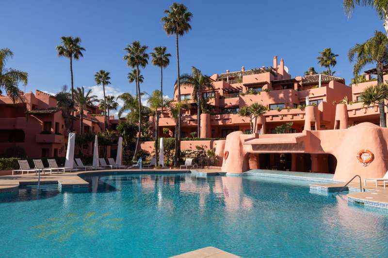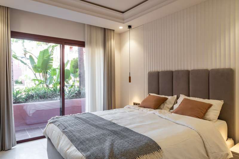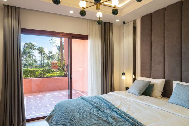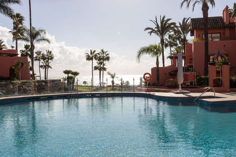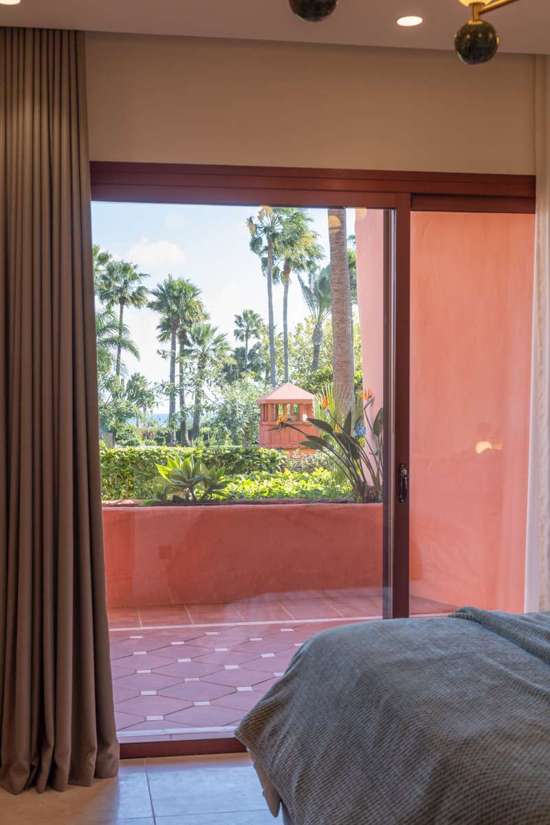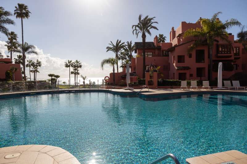 Welcome to your own little slice of paradise at this stunning apartment right on the beach! Located on the prestigious New Golden Mile, this beautifully renovated apartment is perfect for enjoying Mediterranean lifestyle next to renowned Tikitano restaurant and beach promenade. The spacious open-concept living area is designed with sleek lines and warm colours and opens into a partially covered terrace that continues into a lovely private garden. The fully equipped kitchen features modern appliances and high-quality countertops, perfect for preparing meals and entertaining guests. The master bedroom boasts a luxurious walk-in wardrobe and an en-suite bathroom as well as access into the main terrace. Additional features include two guest bedrooms sharing a bathroom, an in-built laundry, and a parking place in the garage with a storage This property comes for sale fully furnished and ready to move in! The Cabo Bermejo community boasts extensive manicured gardens, two swimming pools,