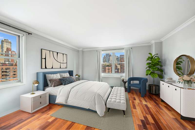This light filled, oversized one bedroom, one bathroom home offers open northern and western exposures with wide city views in a full service building in the heart of Lenox Hill.