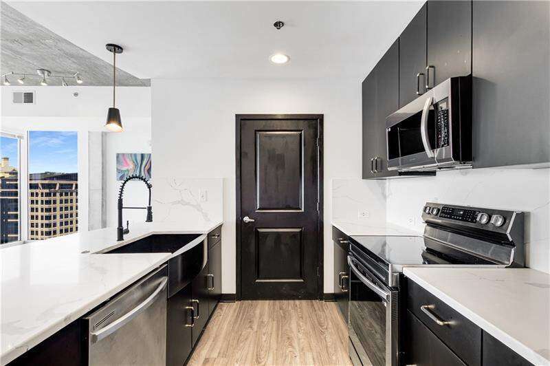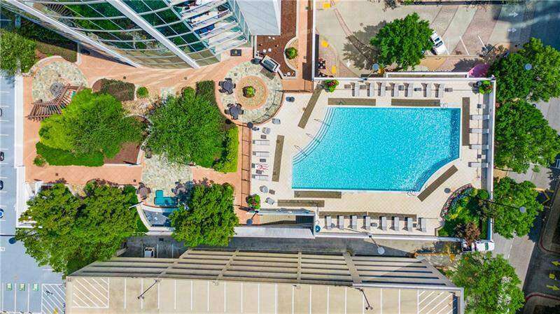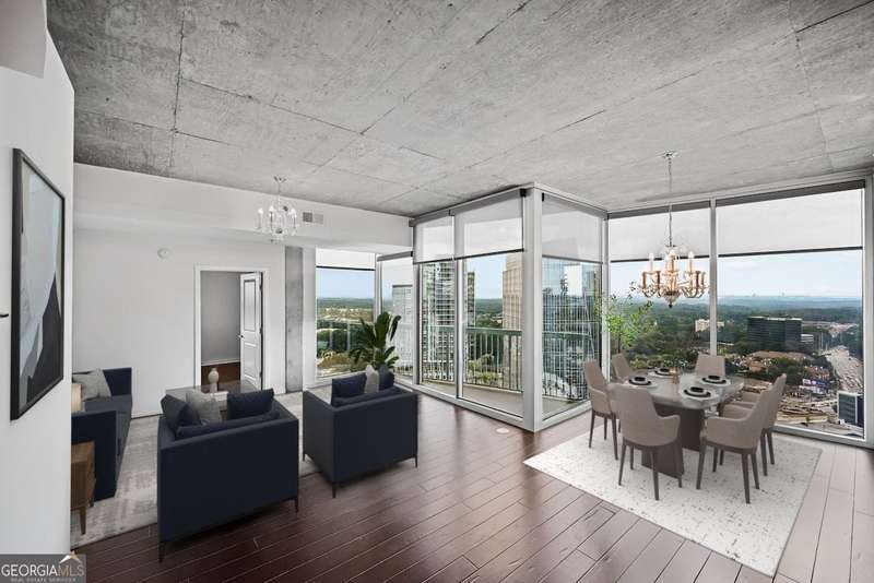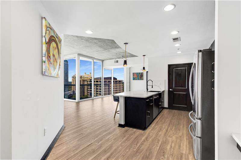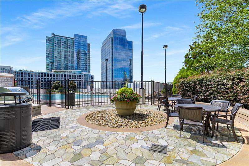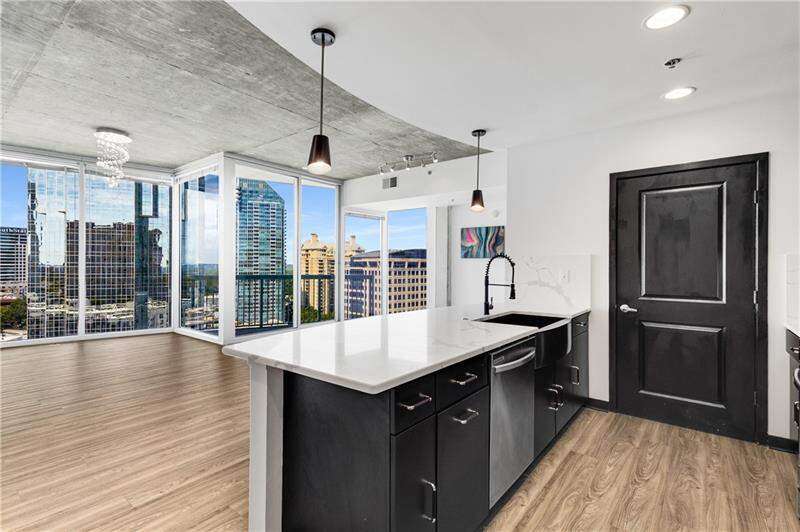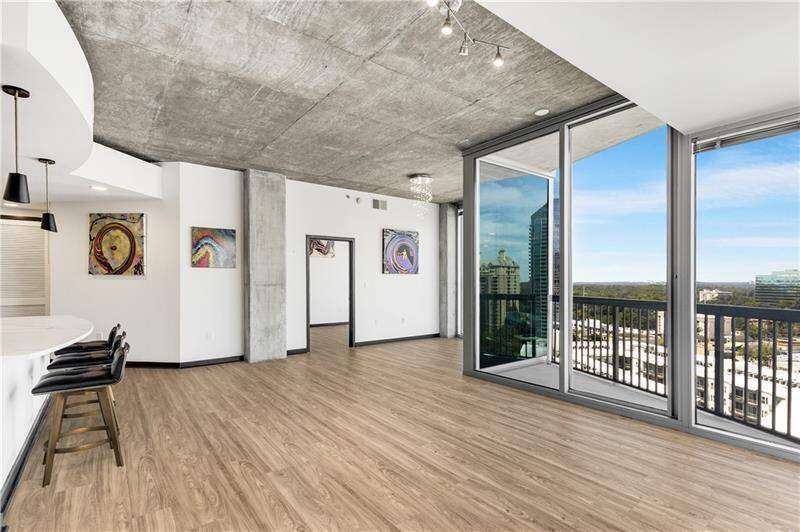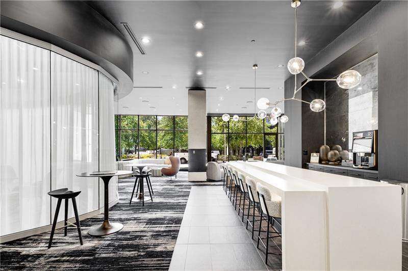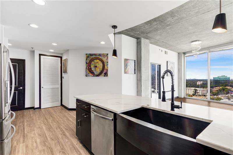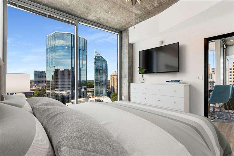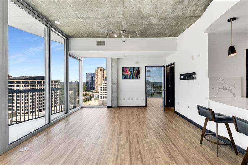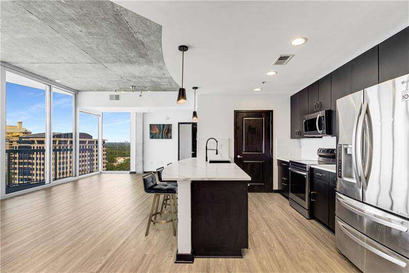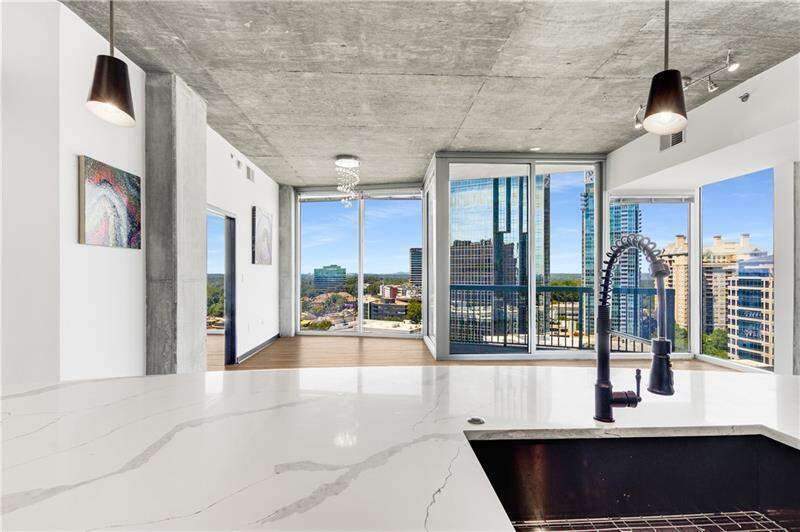 Stunning Skyline Living in Buckhead's Iconic Realm, Welcome to luxury living in the heart of Buckhead. This beautifully upgraded two-bedroom, two-bath condominium in the iconic Realm Residences offers sleek design, modern updates, and breathtaking skyline views. With 1,245 square feet of stylish living space and 10-foot floor-to-ceiling windows, every detail of this home has been thoughtfully designed to combine comfort and sophistication. Step inside to find luxury vinyl plank floors, custom lighting, and a bright, open layout perfect for entertaining or unwinding at the end of the day. The gourmet kitchen features quartz countertops, stainless steel appliances, stained cabinetry, a center island with breakfast bar, and a built-in desk area. The kitchen flows seamlessly into the great room and dining area, where walls of glass showcase dramatic sunrises and sunsets over the Atlanta skyline. Both bedrooms follow a roommate-style split floor plan for privacy. The primary suite boasts a spacious layout, a large walk-in closet, and a spa-like renovated bath with marble shower, black vanity, and quartz counters. The secondary bedroom is equally generous and features access to a second renovated full bath. Enjoy fresh air and city views from your private balcony, or head downstairs to Realm's unmatched amenities. Residents enjoy a resort-style saltwater pool, oversized sundeck, fire pit and grilling stations, and two renovated club rooms. The two-level fitness center includes a weight room, cardio space, and yoga area, while onsite conveniences include a dog park, 24-hour concierge, coffee bar, business center, and guest suites. This home includes two prime assigned parking spaces and HOA fees that cover gigabit high-speed internet, building insurance, and exterior maintenance. Beyond the building, Realm offers unbeatable walkability. Step outside to PATH400, Buckhead's version of the BeltLine, or stroll to Lenox Square, Phipps Plaza, Southern Art, Industry Tavern, Trader Joe's, and MARTA. With easy access to GA-400, I-85, and just 25 minutes to Hartsfield-Jackson via MARTA, the location combines convenience with lifestyle. Whether you're savoring skyline sunsets from your balcony, hosting friends in the open-concept living space, or enjoying Realm's vibrant community events, this home offers a one-of-a-kind opportunity to live beautifully in Buckhead's premier high-rise.