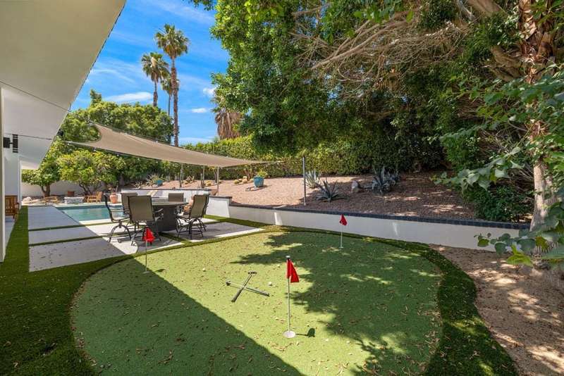 Discover luxury living in this exquisitely remodeled, contemporary 4-bedroom home. The heart of the house is a chef's dream kitchen, featuring state-of-the-art GE Cafe appliances and a 6-burner gas stove that invites culinary creativity. Imagine the gourmet meals you'll prepare, surrounded by friends and family. But the culinary delights don't end in the kitchen--step outside to your BBQ station and enjoy outdoor dining in your private oasis. While meals are grilling, perfect your golf game on your very own putting green, take a refreshing swim in the sparkling pool, or unwind in the serene hot tub. With three stylish guest bedrooms and a luxurious primary suite, this home comfortably sleeps 8, making it perfect for gatherings and getaways. Experience the expansive layout, relaxing outdoor spaces, and endless entertainment that await you. Rent this beautiful home to truly appreciate its charm and comfort firsthand.