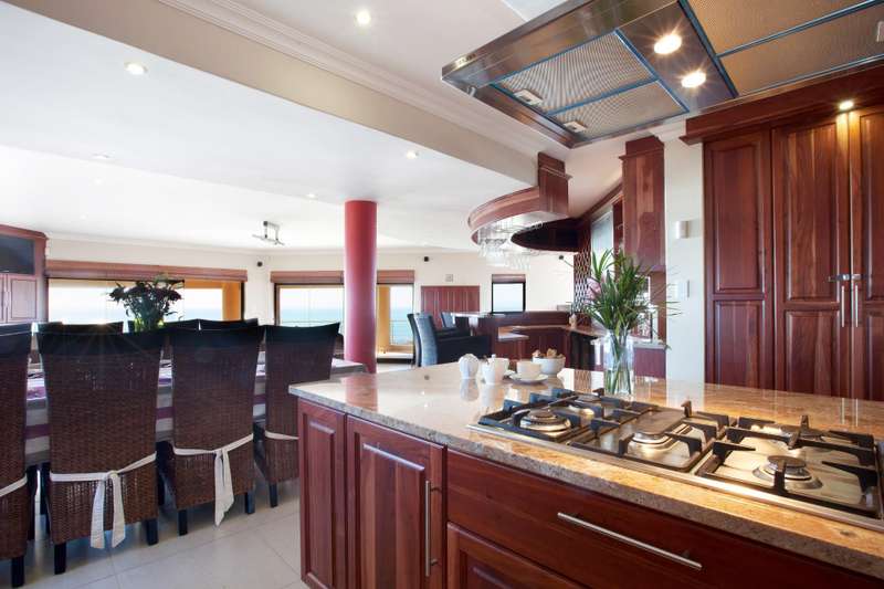 This is a dream coastal retreat featuring indescribably breathtaking ocean views. Where the Pacific Meets Perfection with Unrivaled Ocean Panoramas. This architecturally brilliant home was designed for the view, with a seamless layout in every room to maximize the breathtaking scenery. The breathtaking views are beautifully complemented by the stylish design and modern finishes inside. When stepping inside, the breathtaking views immediately command your attention through a magnificent, feature-sized window. Seamlessly connecting from the entry, the open-plan living area is an entertainer's paradise. It features a fitted bar and a central, double-sided built-in braai that effortlessly serves both the interior and exterior, making it an ideal entertainment hub. Settle in and enjoy the magnificent views as a modern gas fireplace provides the perfect warmth and cozy ambiance for your winter evenings. The gourmet kitchen effortlessly blends into this space, showcasing elegant granite countertops, a five-burner gas hob, rotisserie, and a built-in grill paired with an Elba gas oven. With all these extra appliances at your disposal, you'll be perfectly equipped to create a culinary feast. Chefs will appreciate the oversized, hidden scullery, keeping the main entertaining kitchen pristine and ready for guests. Separated only by stylish glass windows, the open-plan area flows seamlessly into the enclosed Jacuzzi space. This remarkable sanctuary is fit for royalty, allowing you to soak in luxury, sip your favorite drink, and enjoy the unbelievable views right from the tub. The journey upstairs, crossing the striking designer walkway, is rewarded with another awe-inspiring panoramic view. You'll discover four spacious bedrooms, each complete with its own private en suite bathroom. Four of the five bedrooms are appointed with fitted king-sized beds. The main bedroom is your personal sanctuary: a generous retreat with a luxurious, open-plan bath area. Here, you can indulge in the spa bath while the ocean vistas become your private backdrop. You will also find a luxurious fireplace, perfect for setting a cozy, upscale ambiance. This property also boasts a stylish flatlet, complete with open plan kitchen and bedroom with en suite bathroom. The expansive garage offers generous four-vehicle capacity, including an extra-tall door perfectly sized to accommodate a boat or RV. This is a turnkey property, sold complete with all high-quality furniture and appliances throughout the house, making your move effortless. Beyond the listed features, this property has an abundance of extras that truly enhance the offering. The layout and features make this an ideal property for operating a guesthouse. Chas Everitt Shared Mandate Viewings by appointment only.