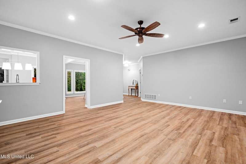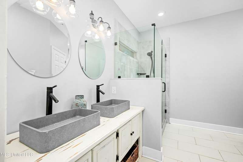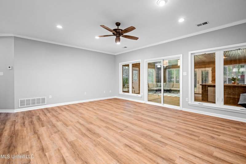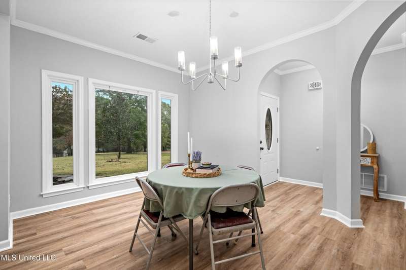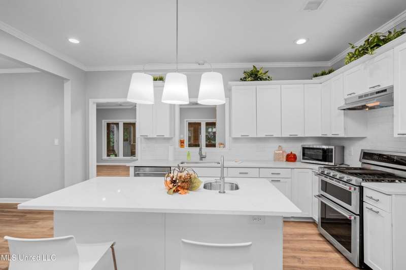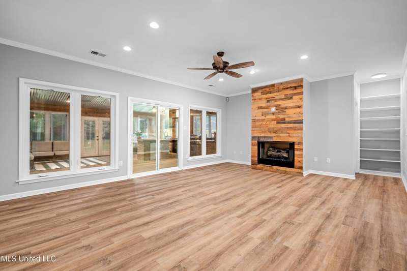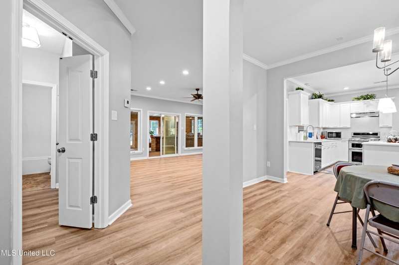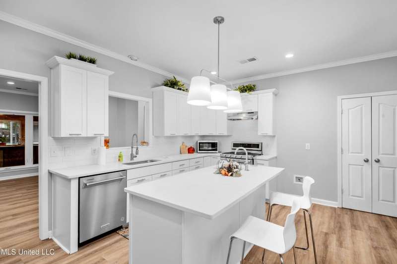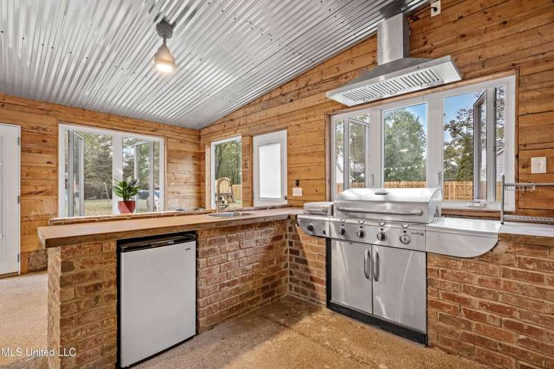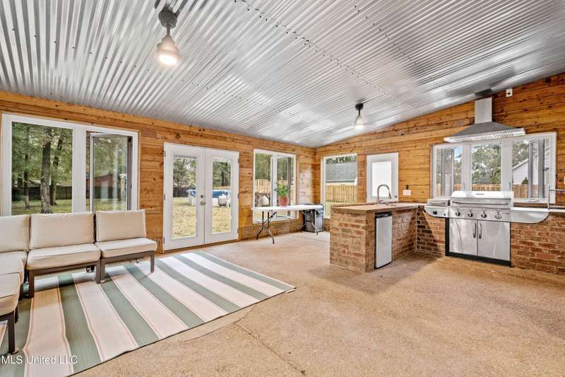 Modern Comfort Meets Country Charm in Cedar Crest Estates! Set atop a beautiful 1.01-acre lot in the peaceful Cedar Crest Estates community, this thoughtfully updated 6-bedroom, 3-bath home offers the perfect combination of privacy, functionality, and style. A long drive and inviting front porch framed by mature trees set the tone for the warmth and comfort found inside. Step through the cheerful entry to discover an interior that feels brand new. The main level showcases new flooring, fresh paint in a soothing palette, and an open-concept layout filled with natural light. The living room features recessed lighting, crown molding, and a stunning custom wood accent wall surrounding the fireplace?a modern rustic touch. Large windows and glass doors add to the spacious and inviting feel. The fully renovated kitchen is designed to impress, featuring new cabinetry, sleek new countertops, tile backsplash, stainless steel appliances, and a breakfast bar ideal for everyday dining or hosting family and friends. The adjacent dining area offers a beautiful view of the property and opens easily into the spacious living room. The main-level primary suite is a true retreat, offering private access to the outdoor patio and pool area. With its neutral tones, generous layout, and en-suite bath, it's the perfect place to unwind at the end of the day. Two additional bedrooms and a full bath complete the downstairs split-floor plan?ideal for families, guests, or multi-generational living. Upstairs you'll find a versatile layout that consist of 3 additional bedrooms, another full bath, and an office. The 6th BR could be utilized for a play room, workout space, or hobby area...the layout provides flexibility, and with plenty of storage throughout the home. One of the standout features of this property is the incredible enclosed outdoor kitchen?a true entertainer's dream! Complete with brick accents, a built-in grill, vent hood, sink, mini-fridge, and plenty of prep space, this area allows you to host cookouts, game nights, or holiday gatherings year-round in a rustic-yet-polished setting that overlooks the fenced backyard and above-ground pool. Outside, you'll love the peaceful setting with mature trees, open grassy areas for play or pets, and a fenced yard that provides both privacy and charm. Whether you're enjoying morning coffee on the porch, relaxing by the pool, or entertaining guests in the outdoor kitchen, this property is designed for enjoyment. Additional features include a 2-car garage, and a transferable termite contract with North MS Pest Control for added peace of mind. With an acceptable offer, the seller will also include a limited one-year home warranty, offering even greater confidence in your purchase. Come see why this home stands out among the rest. With its thoughtful renovations, functional layout, and outdoor living spaces designed for making memories, 9635 Austin Drive is move-in ready and waiting to welcome you home!