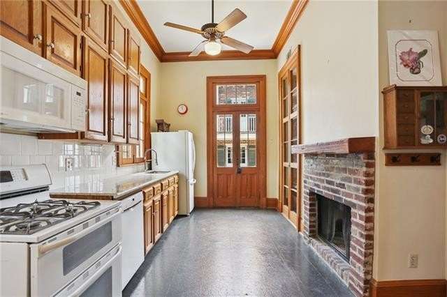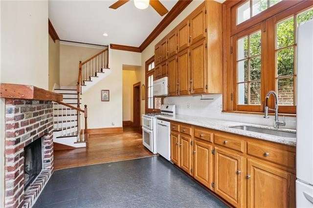 Charming historic Creole Cottage in Tremé, just steps from the French Quarter and walking distance to Frenchmen Street. This beautifully preserved mid-1800s two-story home offers 4 bedrooms and 2 full bathrooms, with original hardwood floors, detailed millwork, and updated kitchen and baths. The flexible layout includes two bedrooms upstairs and two down, ideal for guests, home offices, or roommates. Washer and dryer included. Enjoy private brick and slate patios with lush landscaping separating the main house from a guest house. Central air and heat. Ample street parking. Tenant responsible for all utilities and courtyard maintenance. One pet may be considered with owner approval and $350 non-refundable pet fee (breed and size restrictions apply).