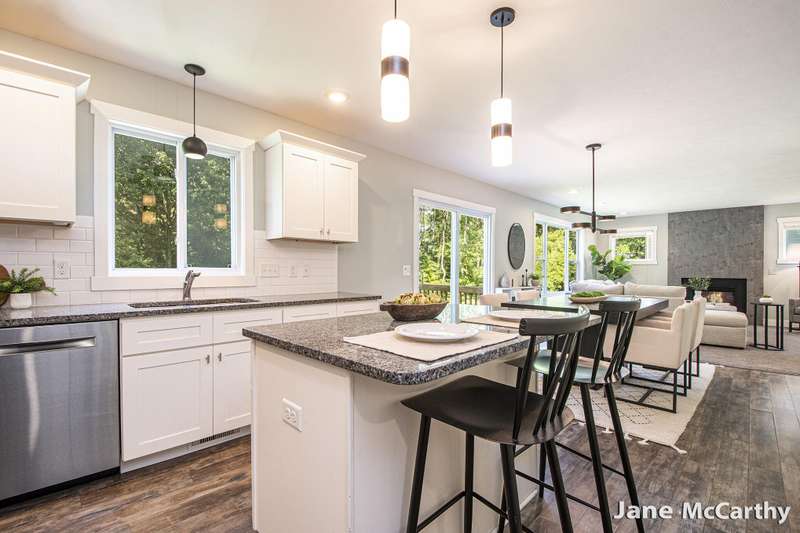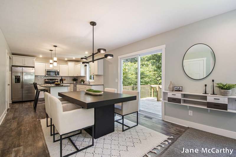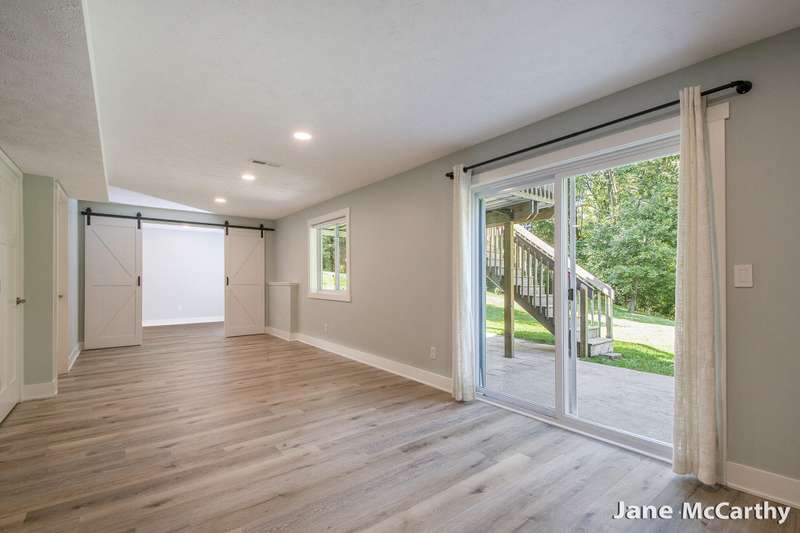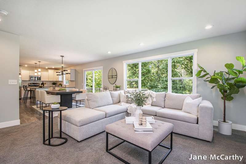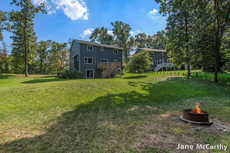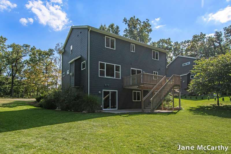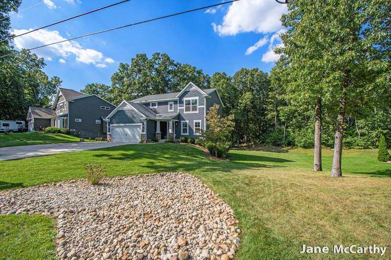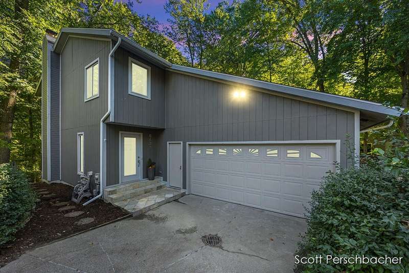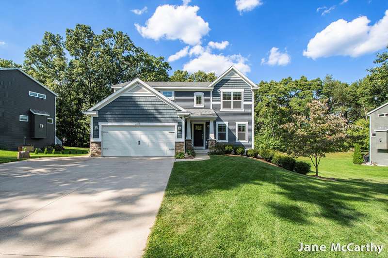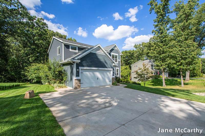 Modern comfort meets wooded tranquility. Nestled on a half-acre in Grand Rapids Township, this 2016-built home blends the feel of new construction with the privacy of a mature setting. Every space has been freshly painted and is move-in ready. Over 2,900 Finished with a bright, open layout. 5BR and 3.5 baths. The main level offers seamless flow between kitchen, dining, and living areas-perfect for entertaining or family time-with abundant natural light overlooking the woods. The walk-out lower level is newly finished for additional living or guest space. Enjoy thoughtful upgrades throughout: whole-house generator hookup, smart switches, Tesla charger, irrigation system, and modern fixtures. Step outside to relax on the deck or explore nearby walking trails-minutes from Knapp's Corner, Provin Trails, and Forest Hills schools. This is the rare move-in-ready home that feels secluded yet connected. Short 2-min drive to boat launch on Dean Lake for fishing, kayaking, or swimming.